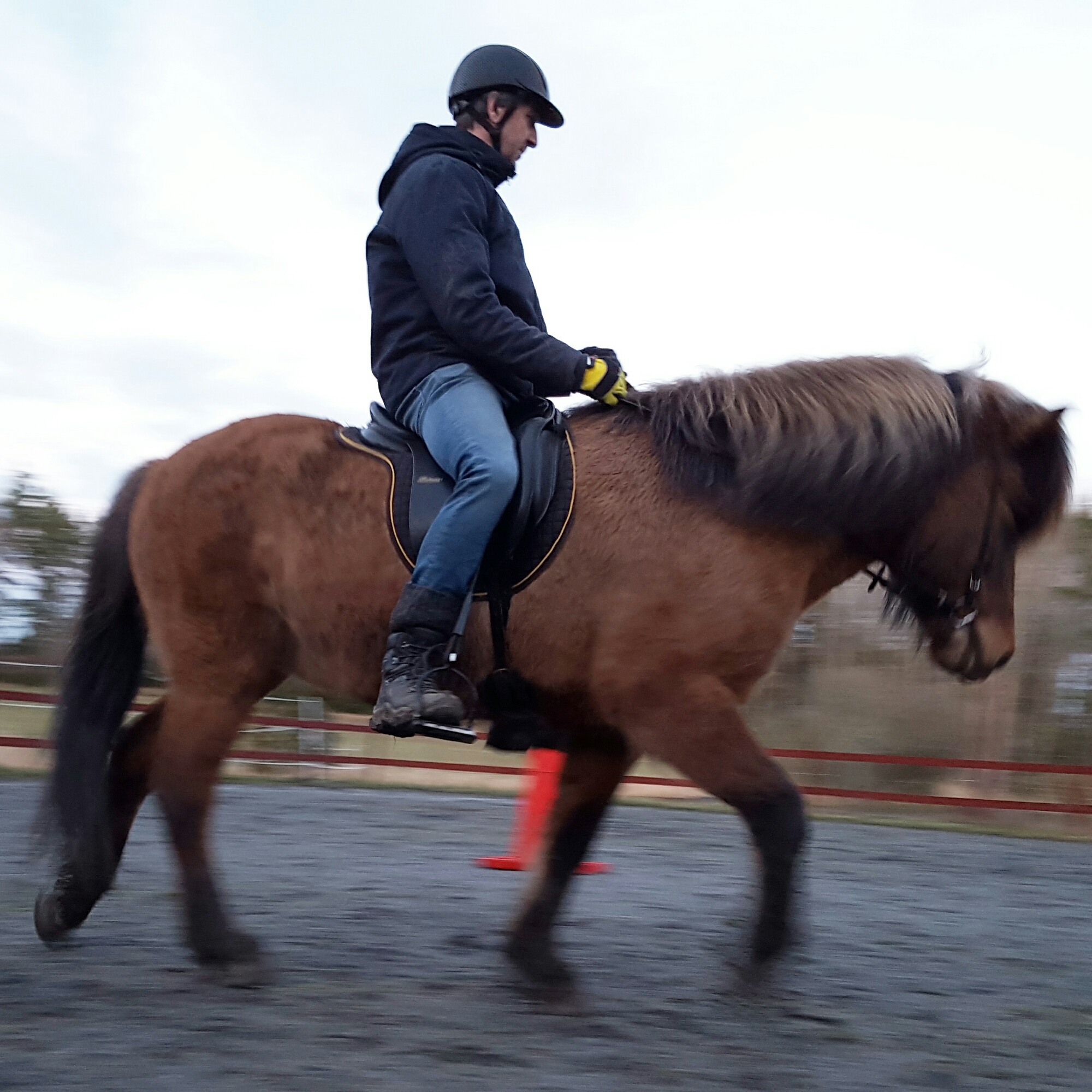Idag var det Pelles tur att rida Atli. Min tur att vara stallknekt. Jag hjälpte till att borsta av en lerig häst, fyllde på vatten i boxarna medan Pelle red. Så enkelt allt blir när man delar på en häst. 😊