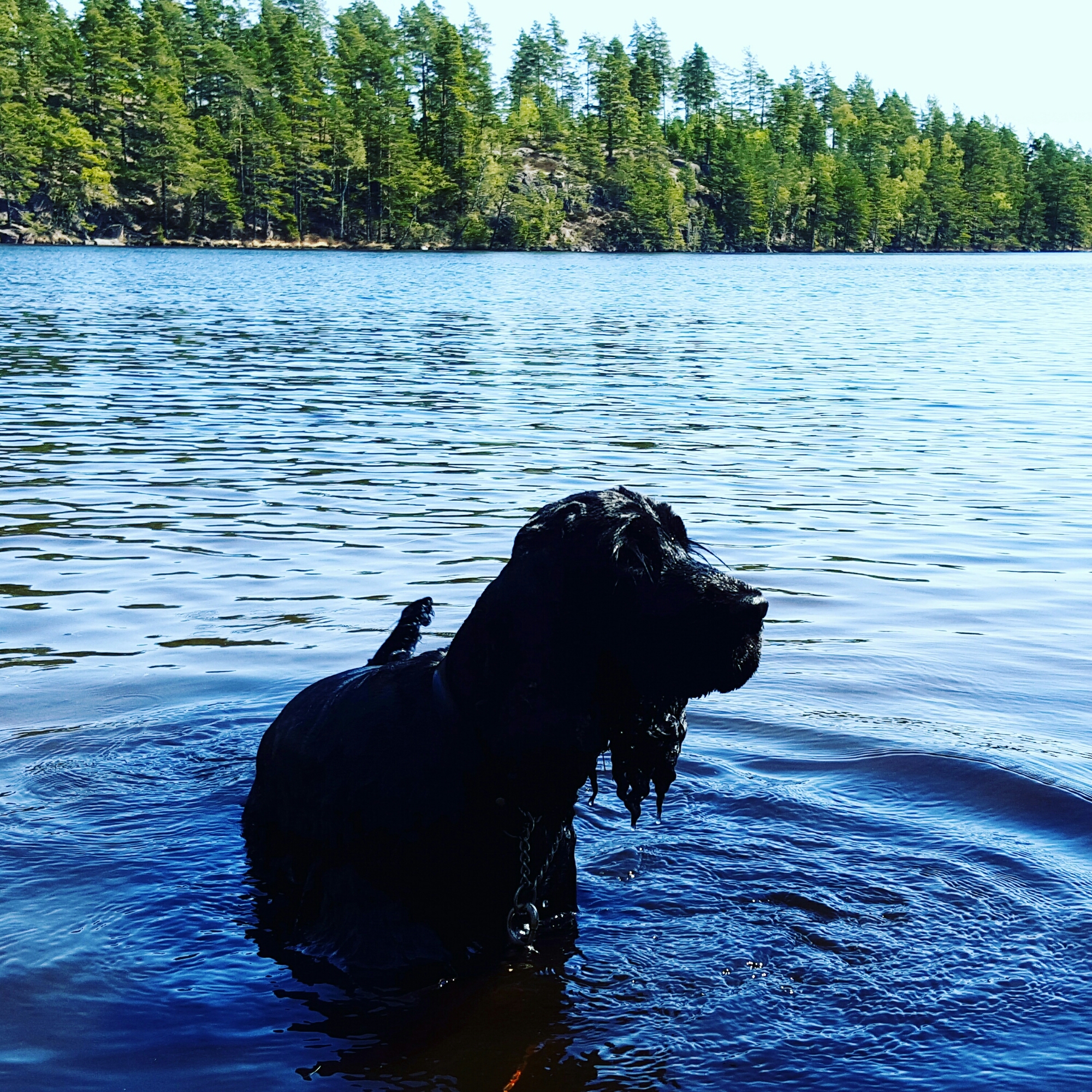 Idag åkte vi till Älgsjön och promenerade drygt en halvmil med hundarna. De badade och hade en toppendag.