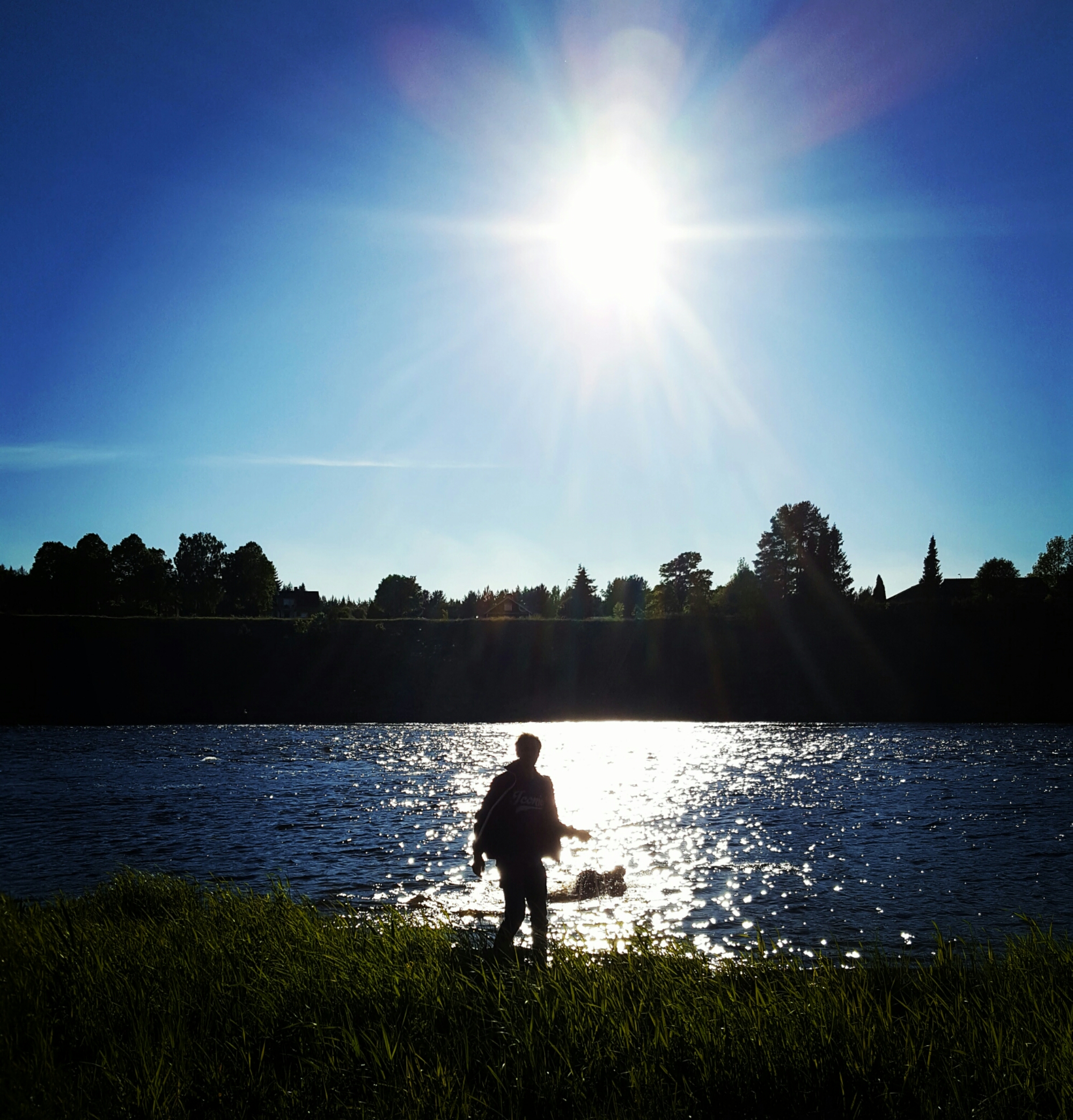 Vi hamnade i Älvkarleby. Här skiner solen och Cheddar och Stilton har badat i Dalälven.
