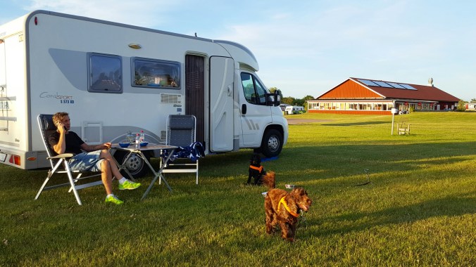 …På riktigt! Idag fick vi tillbaka husbilen nyservad med nybytt kamrem, ny vattenpump och ny olja. Först åkte vi till Rolf och tog en fika, förbi Norrköping och Sally. Sedan åkte vi till Öninge camping. Bra start på resan söderut. Älskar den här husbilen – lagom på alla sätt och vis. Öninge camping är mycket trevlig – stora tomter, egen vattenspost och 800 meter till Vättern. Hunddusch och agilitybana finns också. På kvällen tog vi en lång g promenad. Det är alldeles tyst här – så rofyllt och vilsamt.