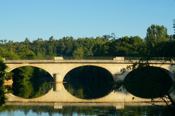 Dordogne är en flod och ett område i södra Frankrike. Här finns de kända Lascaux grottorna och naturen är dramatisk. Gröna dalar, kalkstensklippor och så floden. Här befinner vi oss nu, i en liten by vid en biflod till Dordogne som heter Isle. Igår var vi inne i Perigeux som sägs vara ”huvudstaden” i Dordogne. Den var ganska stor och inte jättemysig. Så den staden lämnade vi snabbt.