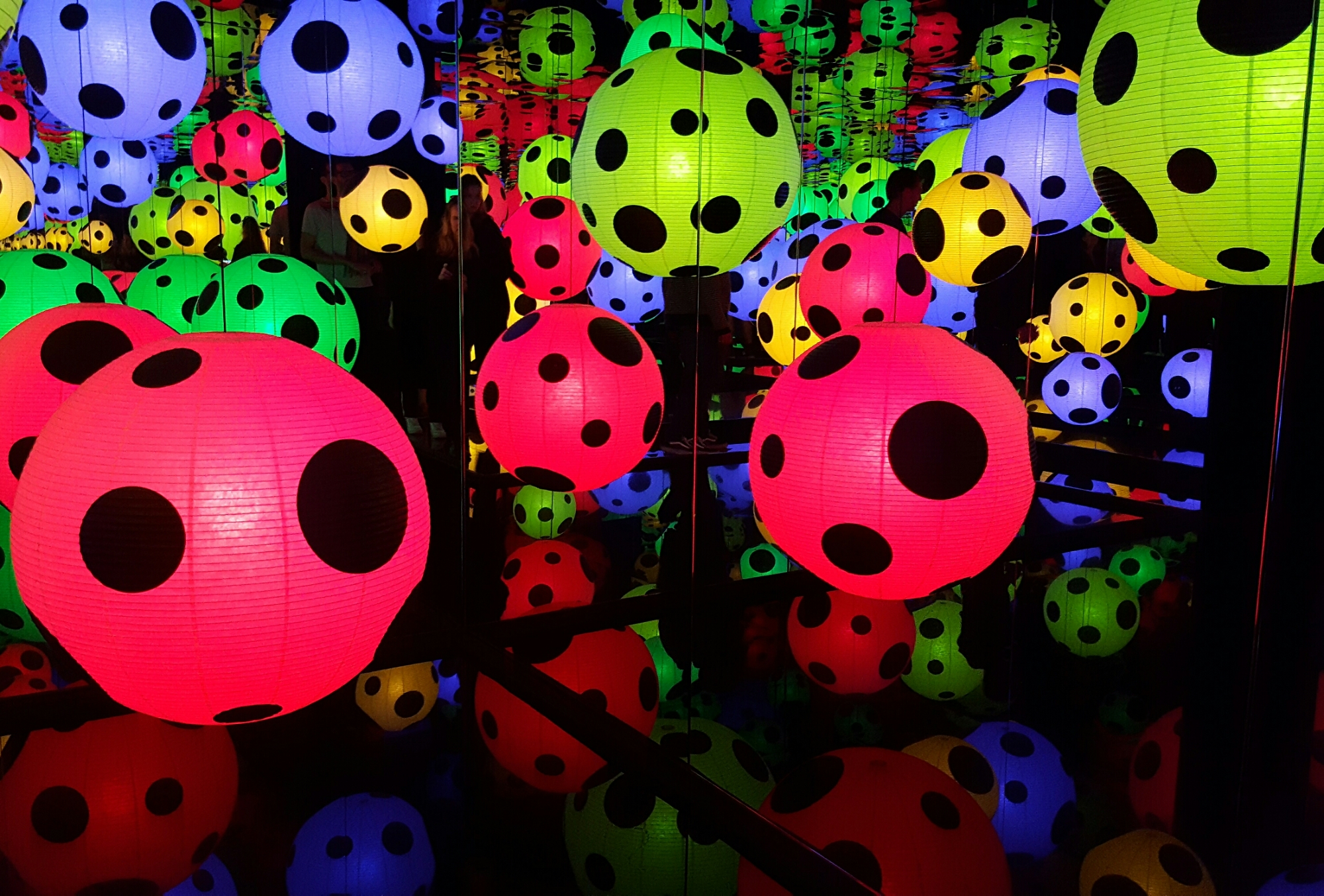 Vi trodde först att vi hade missat Yayoi Kusamas utställning -sista dagen idag. Men så kollade vi hemsidan och såg att de hade förlängd öppettid ikväll till klockan 21.00. Yes tänkte vi och styrde kosan dit.