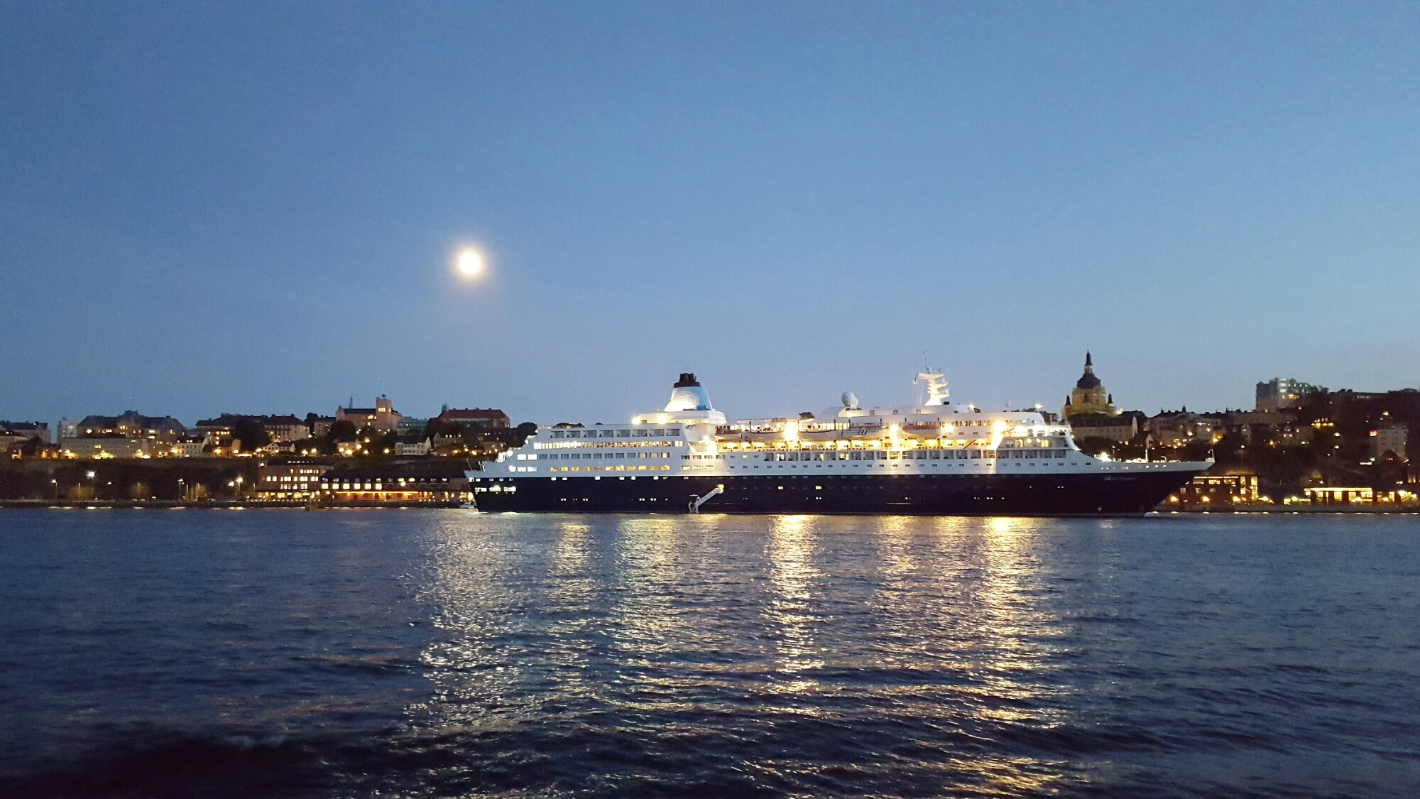 När vi sett utställningen hade det börjat skymma. Vi tog en promenad på Skeppsholmen längs med.vattnet. Mysigt.