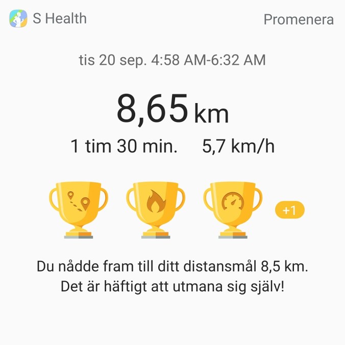 Tänk att ha en så fin vän som Lotta, som man kan sticka ut och vandra med i ottan. Det är inte alla förunnat. Idag utmanade vi oss själva. Klockan ringde 4.45 sen gick vi 8,6 km. Det kändes i benen, de var ganska tunga på slutet.