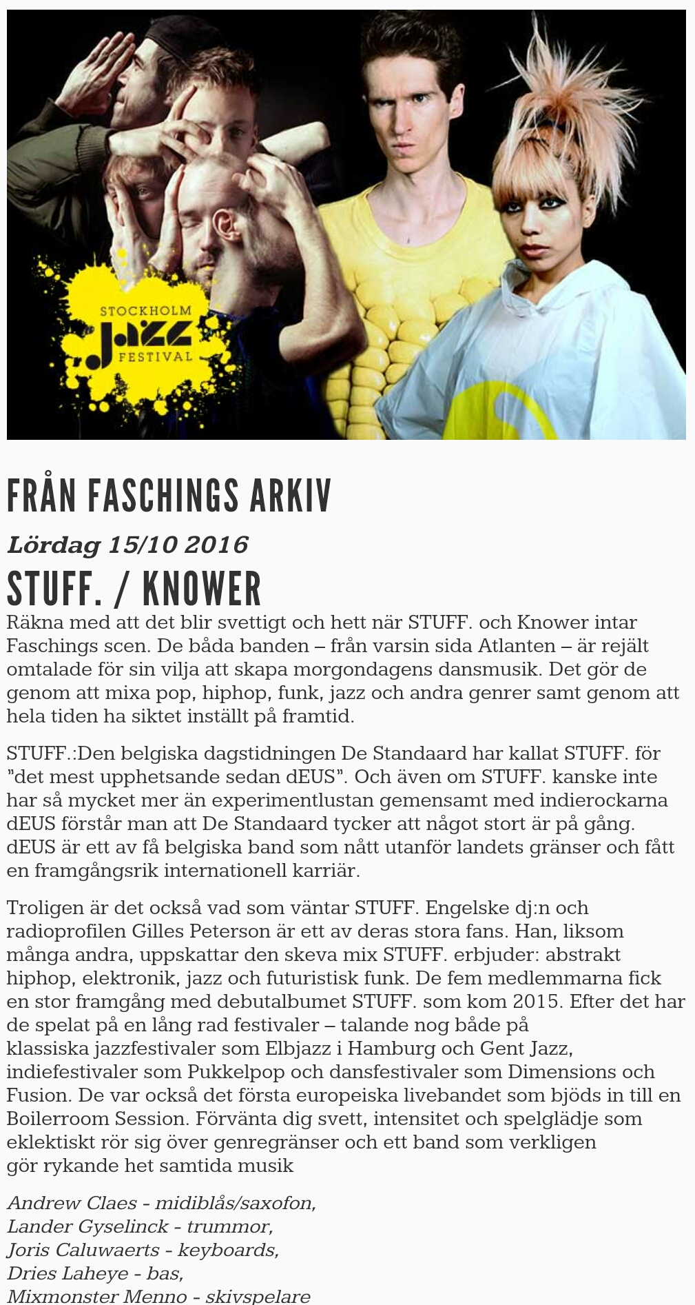 STUFF. levererade härlig musik på hög nivå. Intelligent musik, unik som ett konstverk. Hur bra som helst och det verkade publiken också tycka. I vår kommer de tillbaka och spelar igen. Kan rekommenderas.