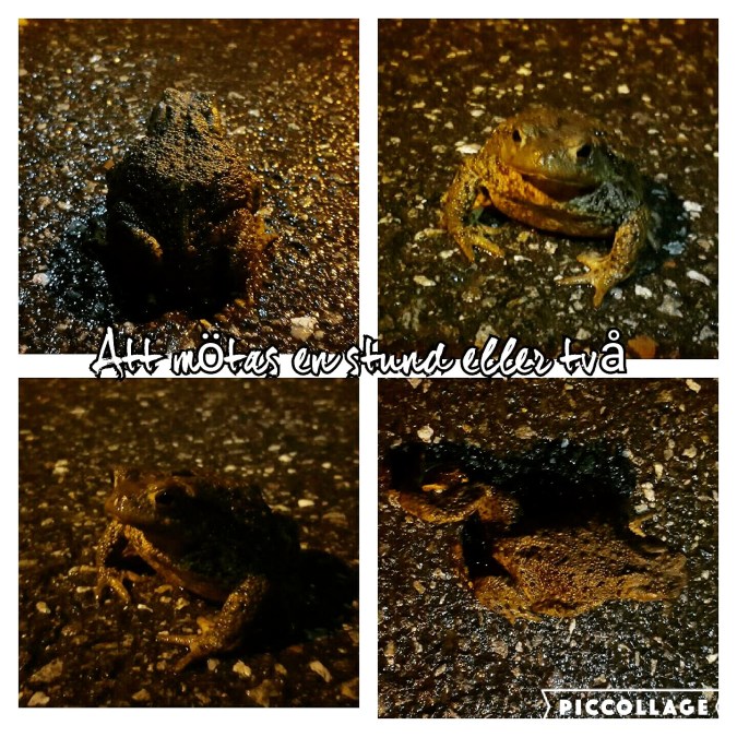 Imorse duggregnade det när vi gick vår powerwalk. Vi funderade en stund på om det verkligen var regn eller kanske lite snö? Både Lotta och jag fick en vinterkänsla. Det var så tyst och så kändes det mörkare och lite tyngre på något sätt. Vi mötte i alla fall flera paddor som uppskattade det fuktiga vädret.