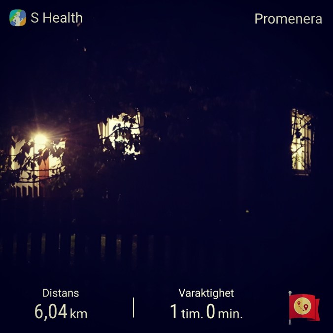 Ja nu så är vi faktiskt inne på 7:e veckan med promenader. Det känns ju väldigt bra – att vi varit så uthålliga. Just idag höll vi ett bra tempo – vi landade på 6 km/h. Jag testade även att jogga en bit uppför vår grusväg. Det gick bra men efteråt fick jag ansträngningsastma. Trist att bli begränsad av det. Ja men jag ger mig inte, tänker fortsätta jogga korta bitar. Det kanske går över om jag får bättre kondis?