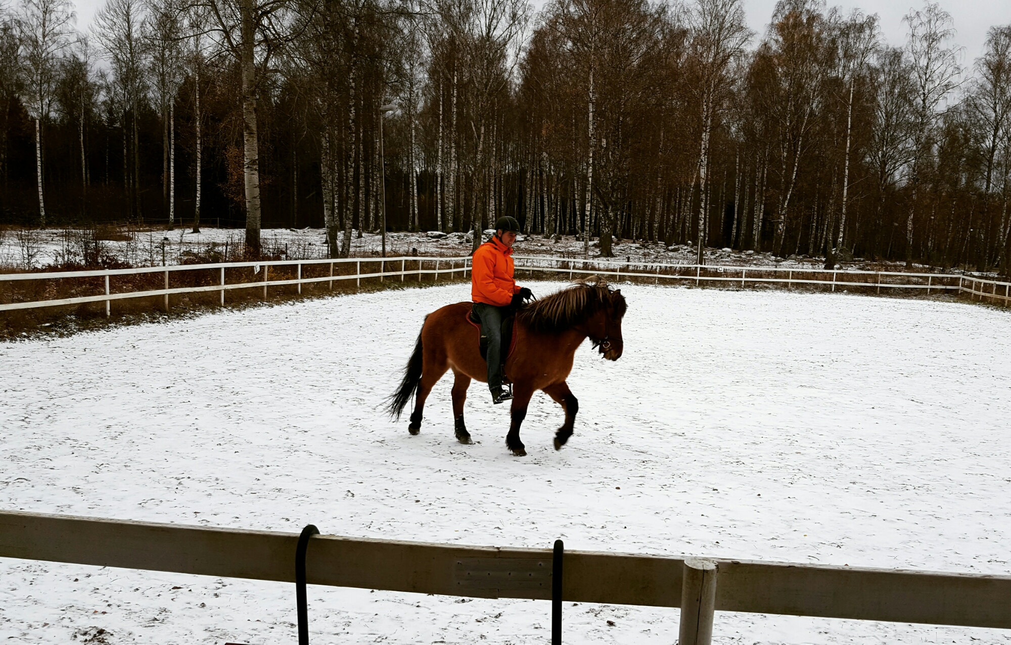 Pelle red Atli idag, men det var både halt och svinkallt – inget bra ridvägar med minus 2 och hård vind.