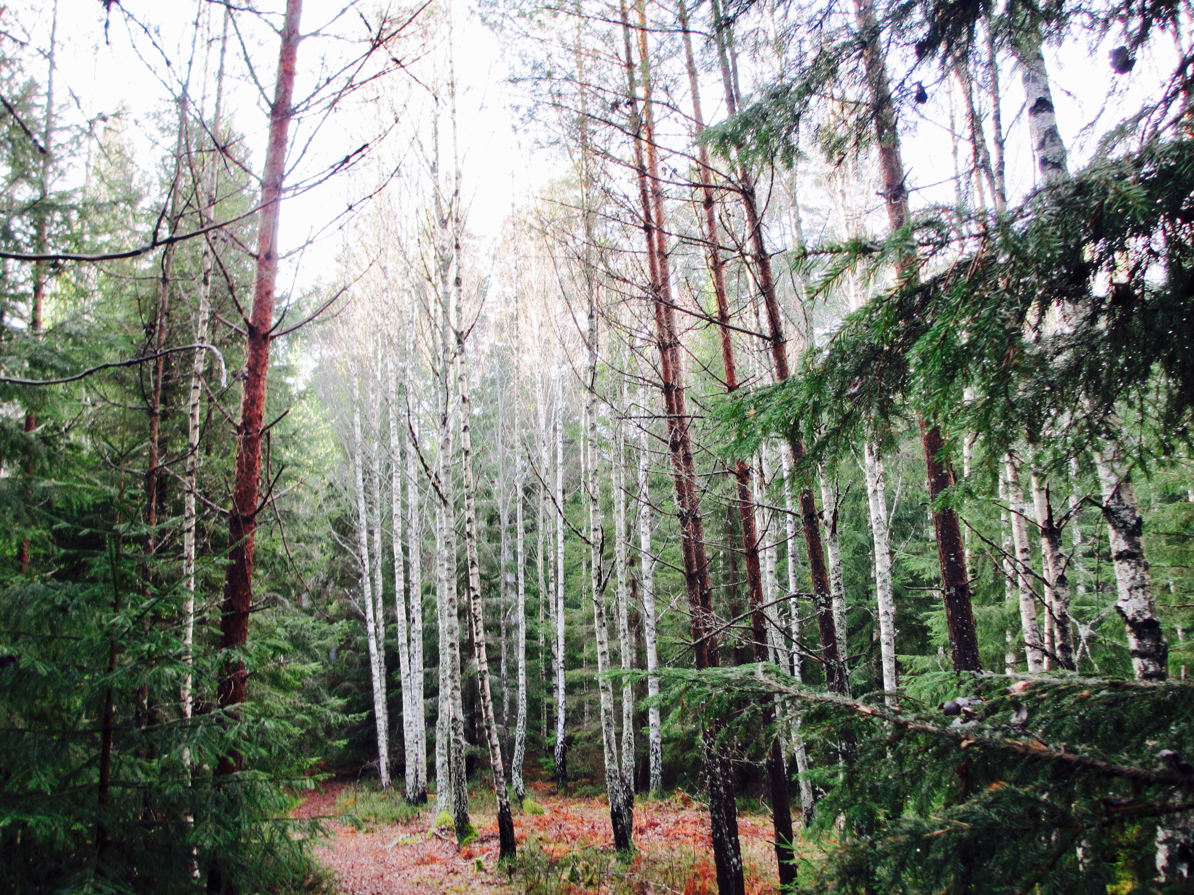 Det var ljust, men lite mulet när vi gick ut i skogen. Jag red Atli, Pelle promenerade med hundarna.