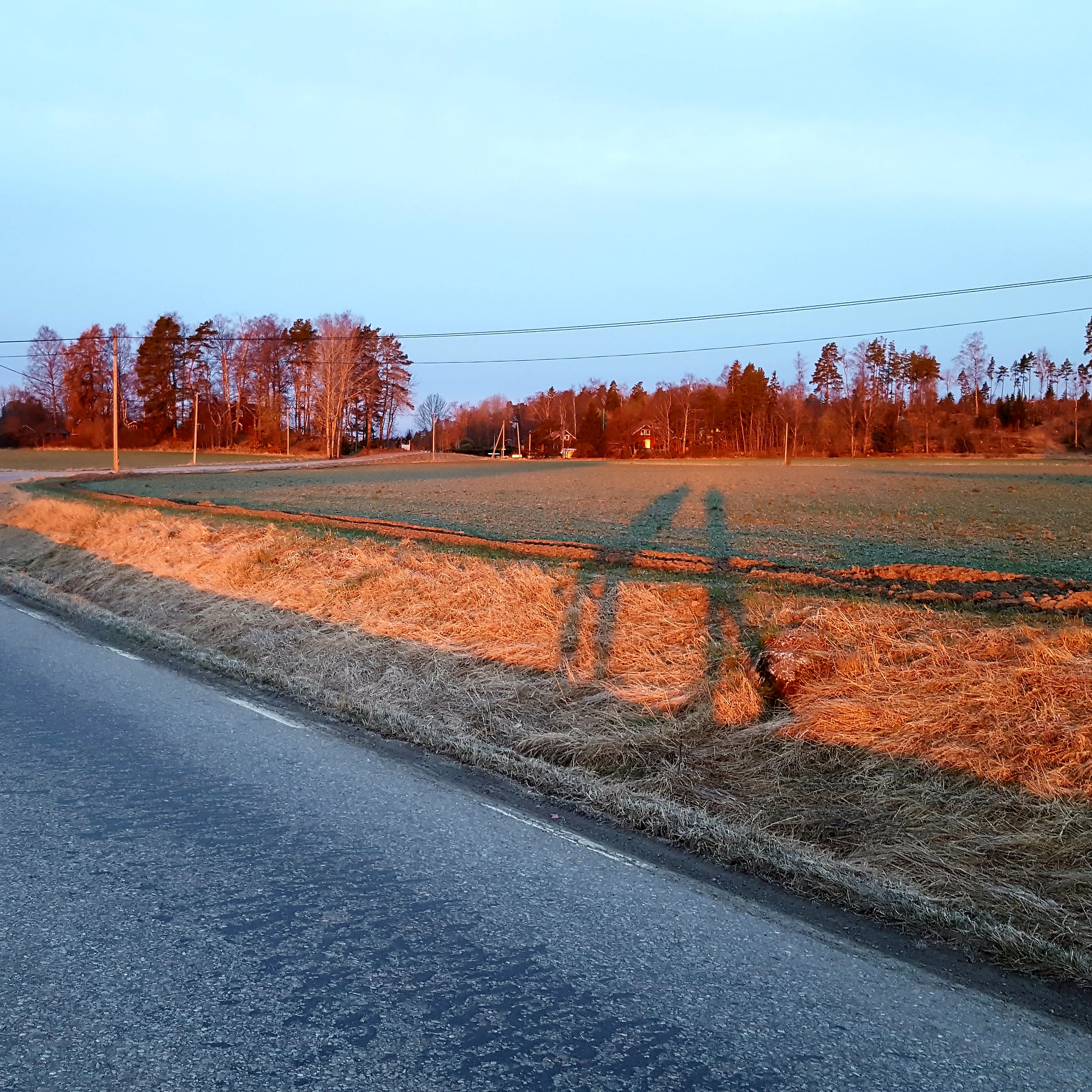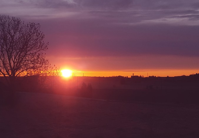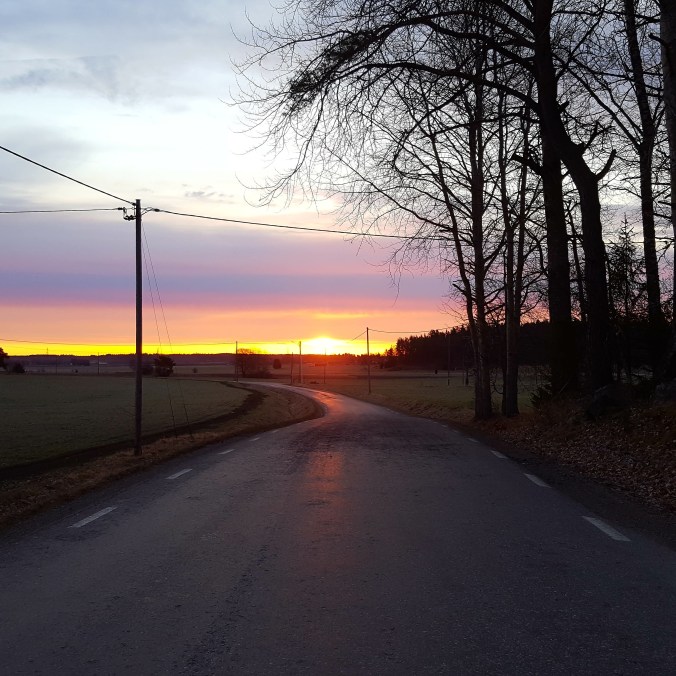 Imorse ringde väckarklockan klockan 5 – snoozade till halv 6. Upp och i träningskläder – sen mötte jag Lotta på vägen. Vi traskade vår vanliga runda och fick bland annat se solen gå upp. Strax därefter försvann den bland molnen. Det kändes lite tungt att gå idag – träningsvärk från simningen igår.