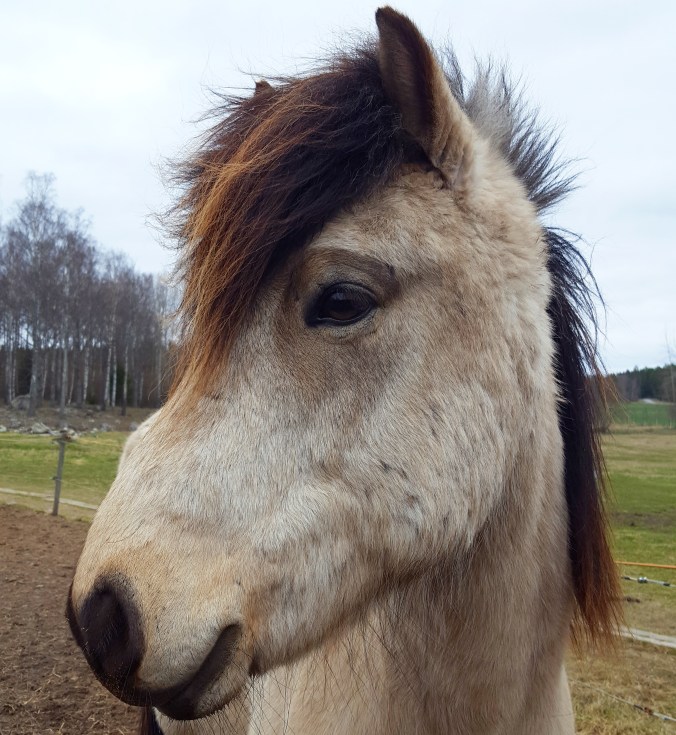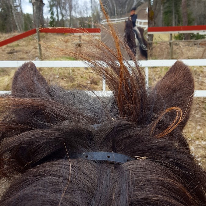Red Ui på volten. Tränade på att flytta och svänga för vikthjälper. Klok häst – han förstod snabbt vad jag menade. Vi töltade en del – han har så klockren tölt– bara att åka med. Gillar också den hästens mentalitet, han är cool.
