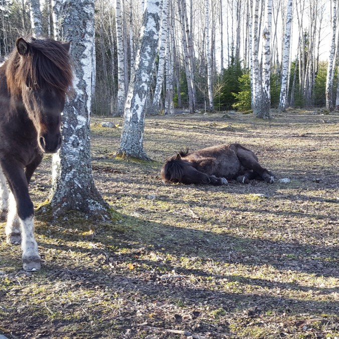Efter jobbet kände jag mig rätt slut och seg. Bestämde mig ändå för att åka och rida Catrins Ui. Jag hade tänkt rida på volten – men två andra ryttare skulle rida ut, så Ui och jag hängde på. Det blev en härlig ridtur med fågelkvitter och solsken Skeppartorpsrundan. Den här fina hästen har superskön skritt – man gungar fram.