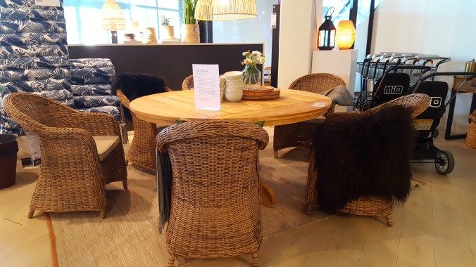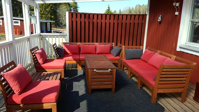 Igår sålde vi våra utemöbler – blev helt nerringda. Möblerna inhandlades till Filles student för fem år sedan. Tiden går fort.. Då behövde vi många sittplatser – nu vill vi sitta mer bekvämt. Igår beställde vi nya fåtöljer – kommer om en vecka, längtar. Bord ska vi snickra själva – jag tror det blir runt?
