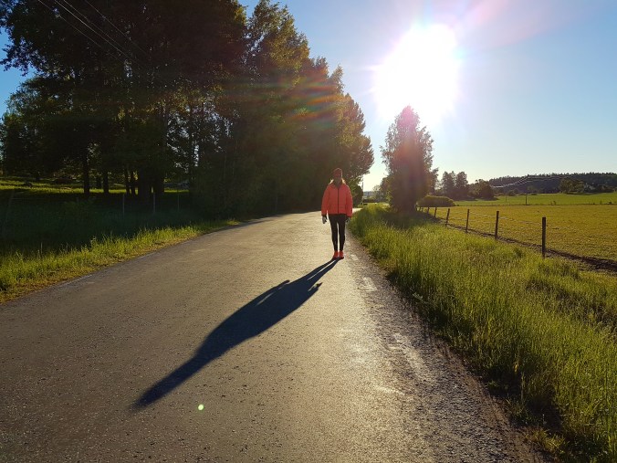 Nämen idag var det lite jobbigt att promenera. Vet inte riktigt vad det beror på – det kan vara för att vi gått för lite på sista tiden? Ja ja – men det blir bättre igen med mer träning. Det är ganska kyligt i luften just nu – fast vi är inne i juni. Jag vill ha lagom med regn och värmande sol.