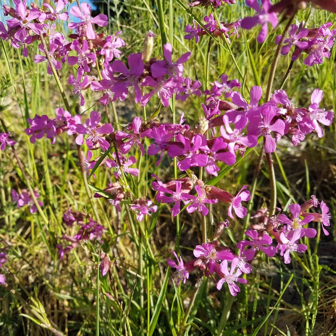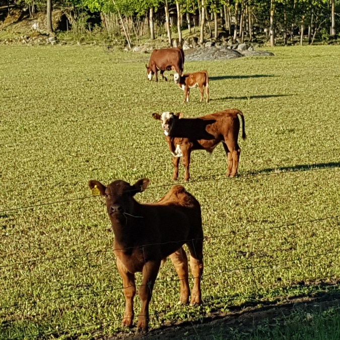 Såg flera vackra blomster – tjärblomster och midsommarblomster och så några söta kalvar.