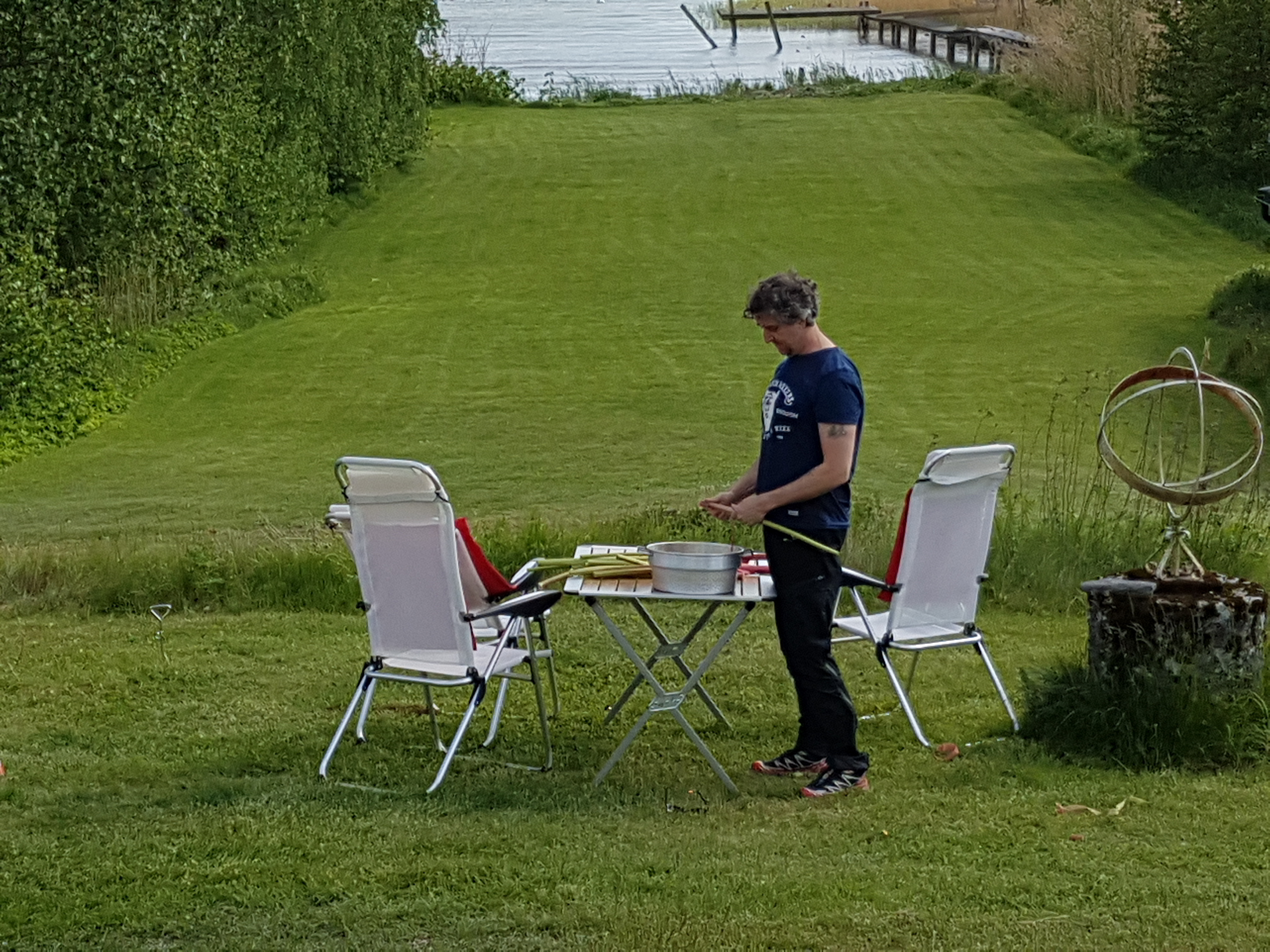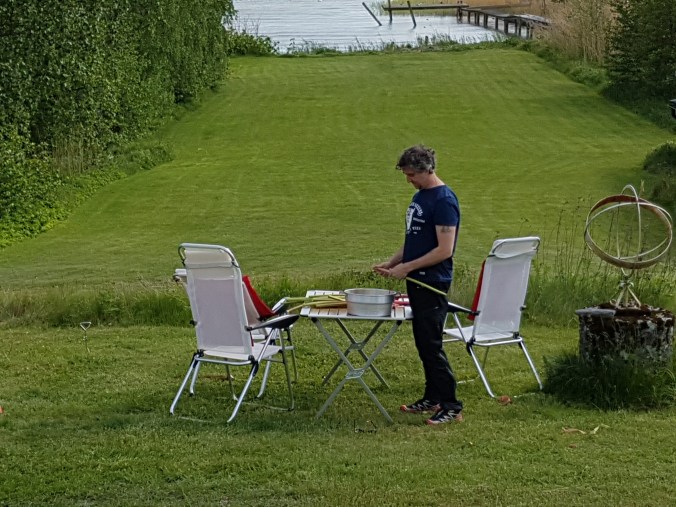 Två dagar i Bråviken hos svärfar. En dag med trist väder men med pyssel – Pelle gjorde rabarbersaft – jag bakade bullar.