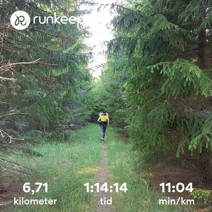 Nytt inslag – promenaden avslutades med löpning i granskogen.