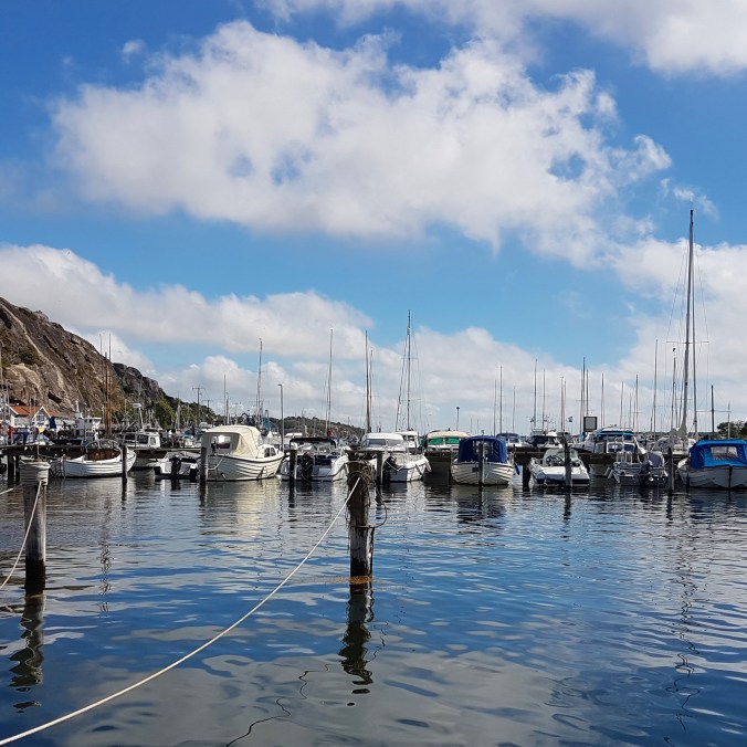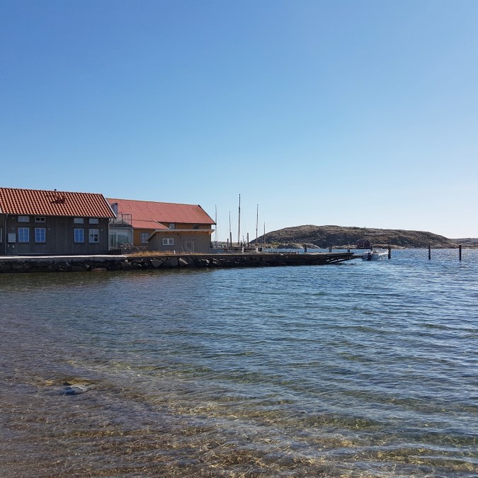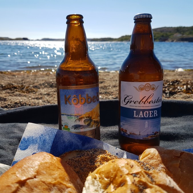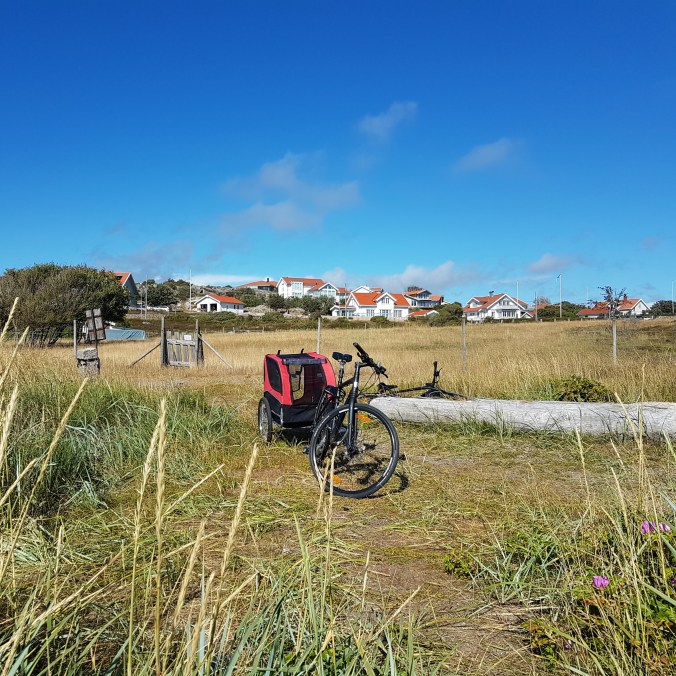 Cykeltur med hundarna – och äntligen skiner solen! Picknick – och en öl eller två. Vi styrde kosan till Grebbestad och sen till Grönemad. Vilken mysig liten by – ett gammalt fiskeläge och en vacker liten strand.