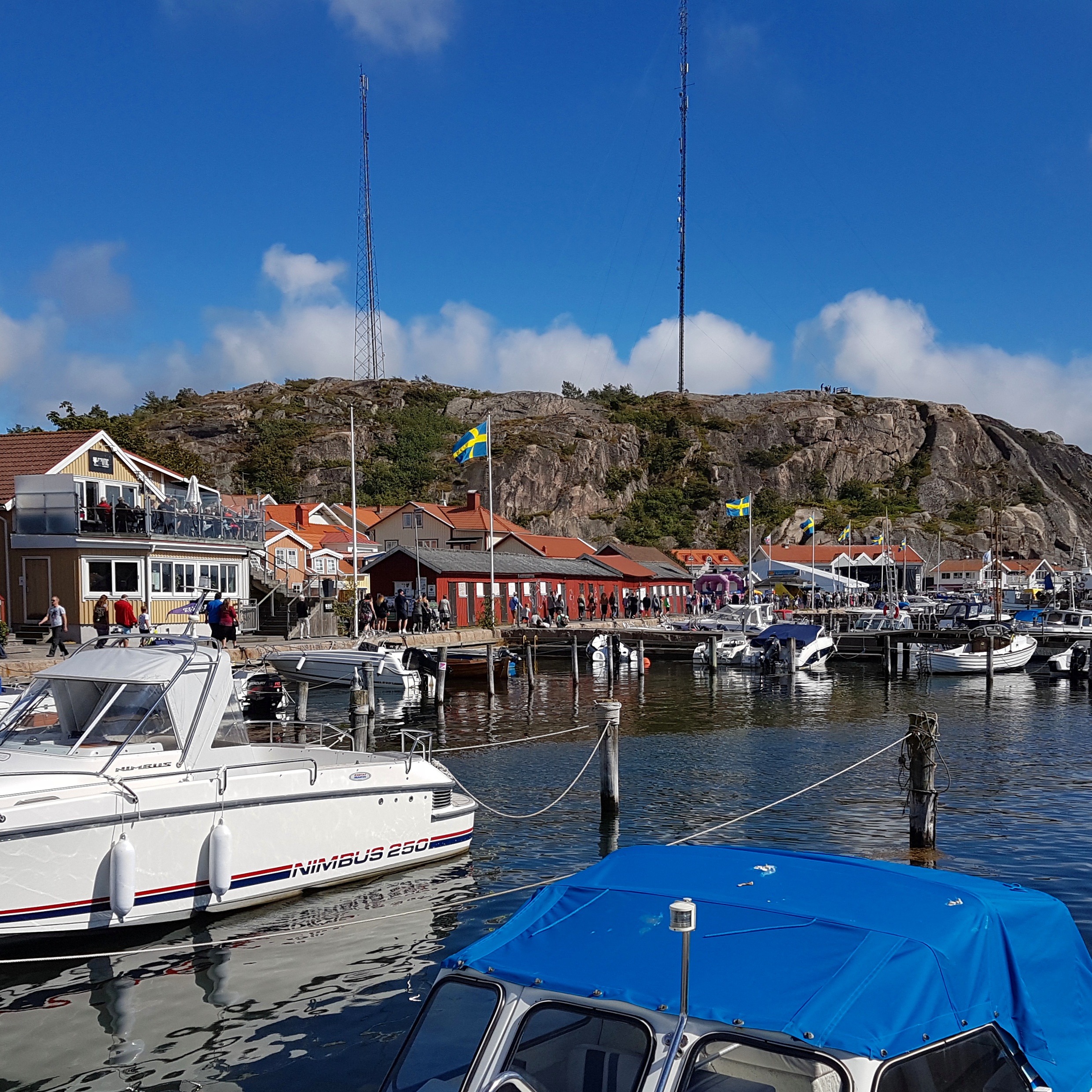 Cykeltur med hundarna – och äntligen skiner solen! Picknick – och en öl eller två. Vi styrde kosan till Grebbestad och sen till Grönemad. Vilken mysig liten by – ett gammalt fiskeläge och en vacker liten strand.