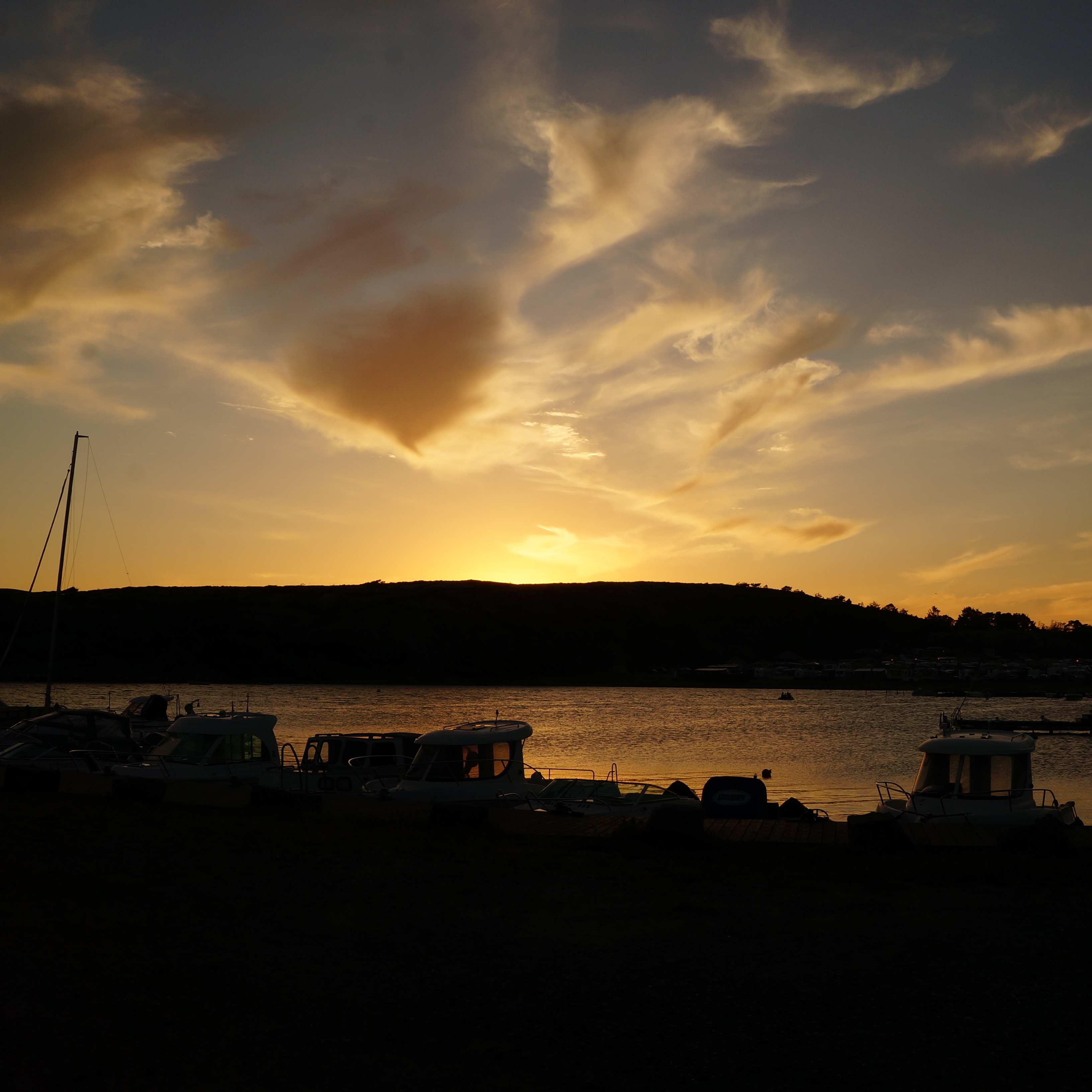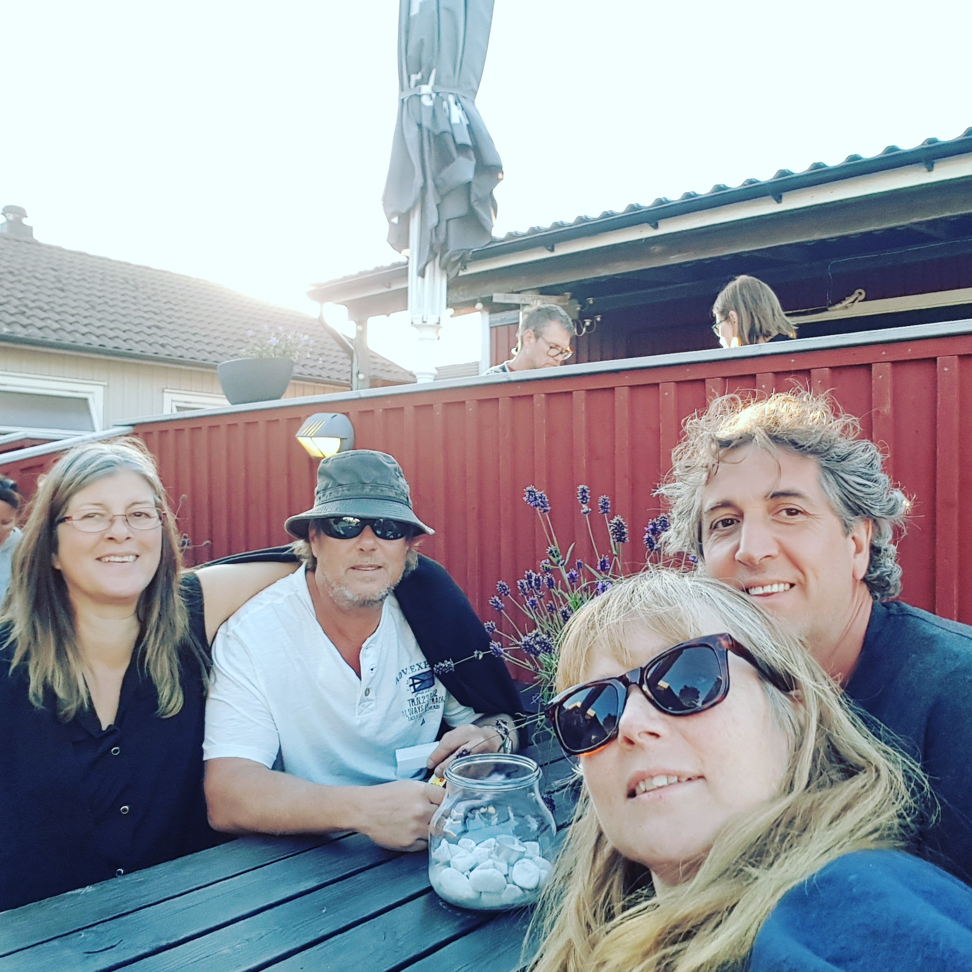 Sen precis när vi skulle rulla in på campingen så mötte vi Åsa och Peter som kom rullande i sin husbil. De ska göra oss sällskap resten av resan och det tycker vi ska bli skoj. Åsa bjöd på Veuve Clicquot och så spanade vi på solen som gick ner och hörde vågornas skvalp. Bra dag!