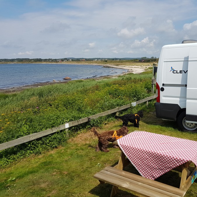 Imorse lämnade vi Varberg och rullade mot Haverdal. Där hade vi tur och hittade en otroligt fin ställplats i Skallkroken, Steningevikens naturreservat. Vilken utsikt!