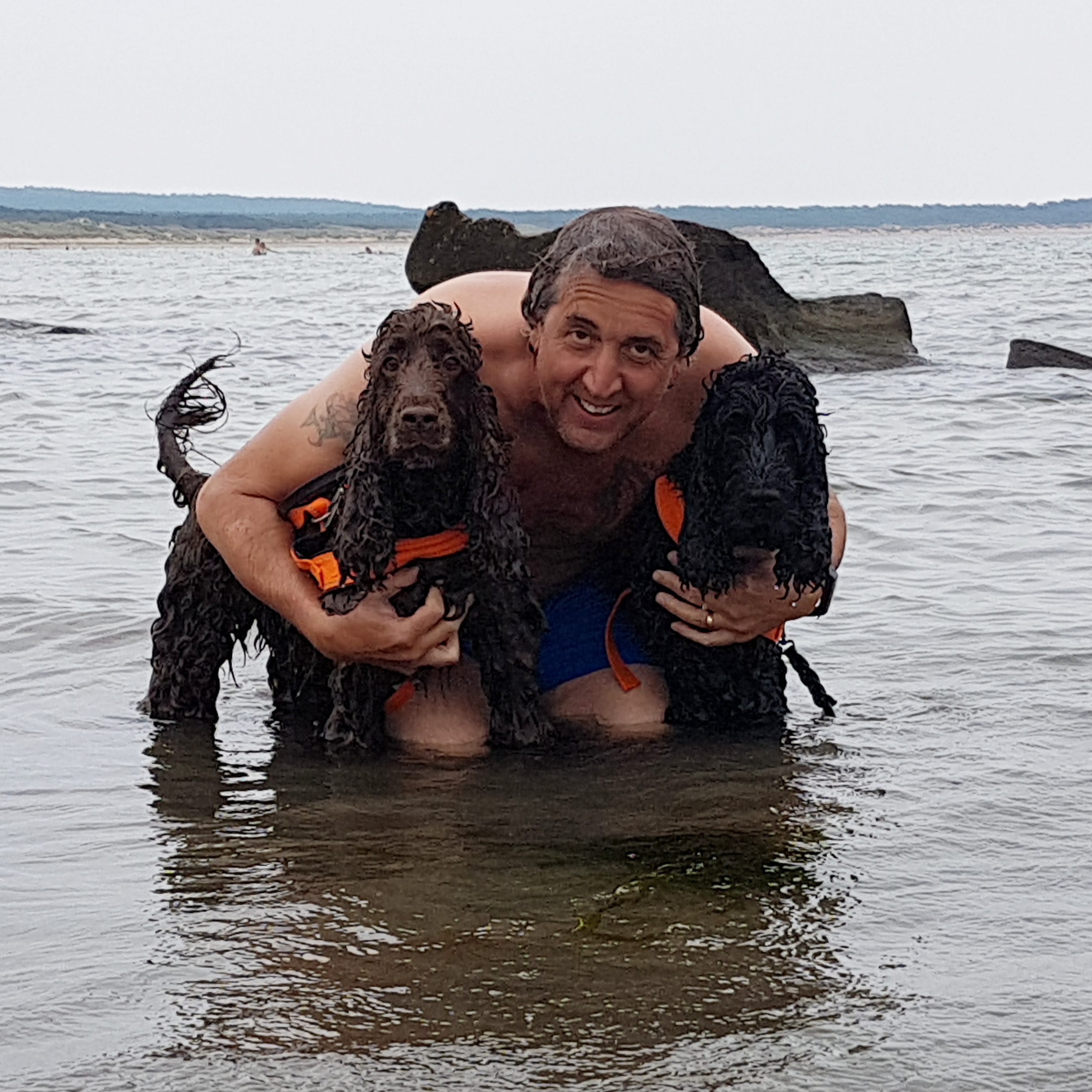 Pelle och Peter badade med hundarna. Åsa och jag fotade. Idag gick vi 7.5 km.