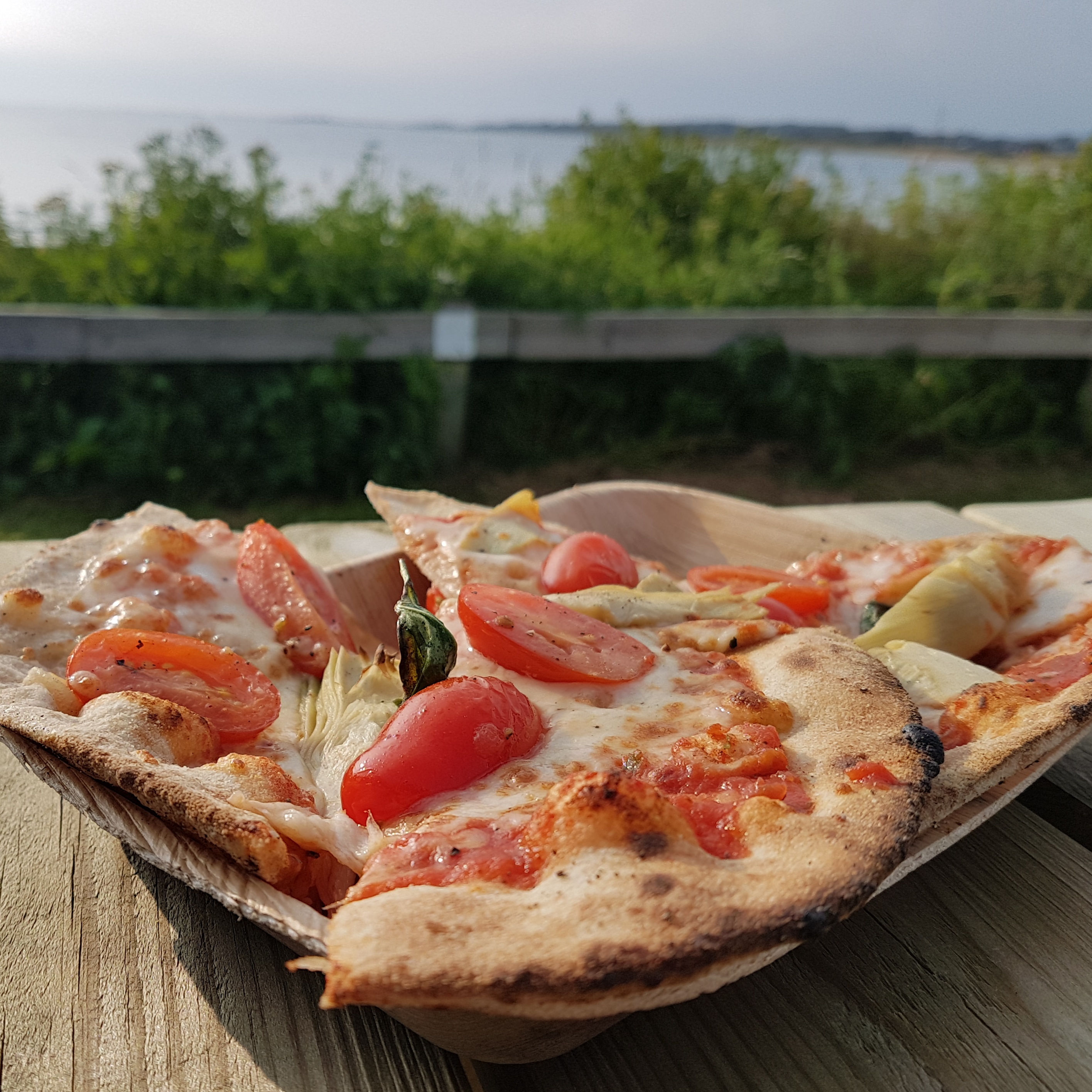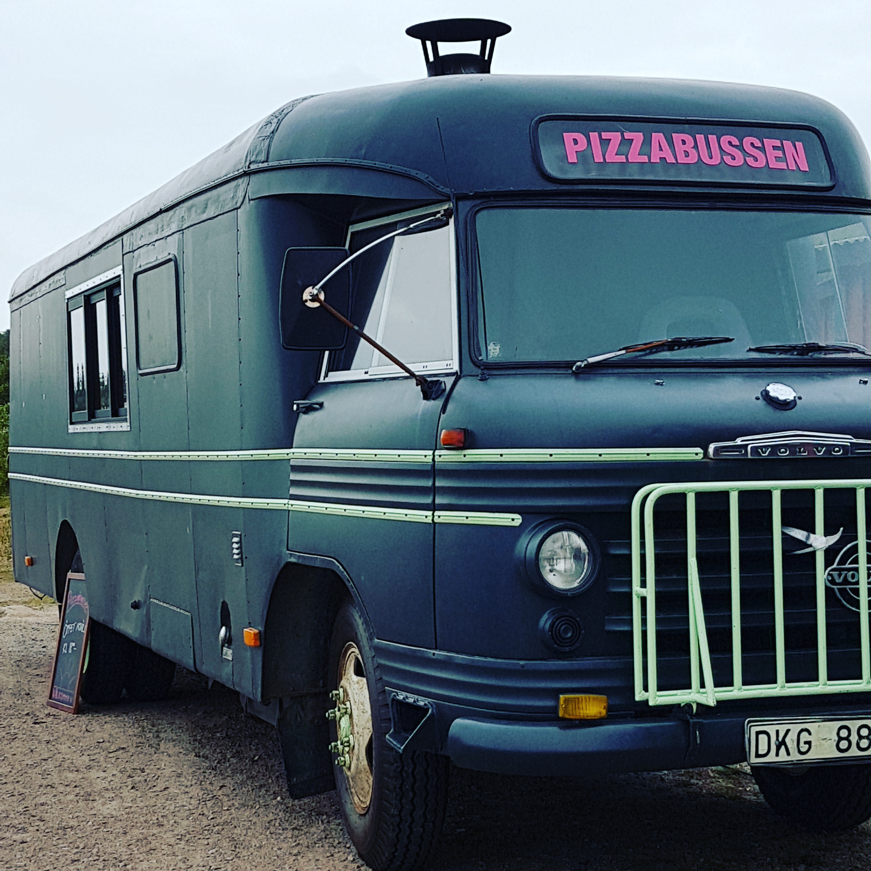 Pizzabussen – en lokal attraktion – folk vallfärdade till bussen och stod i kö ändå till klockan 21.00..