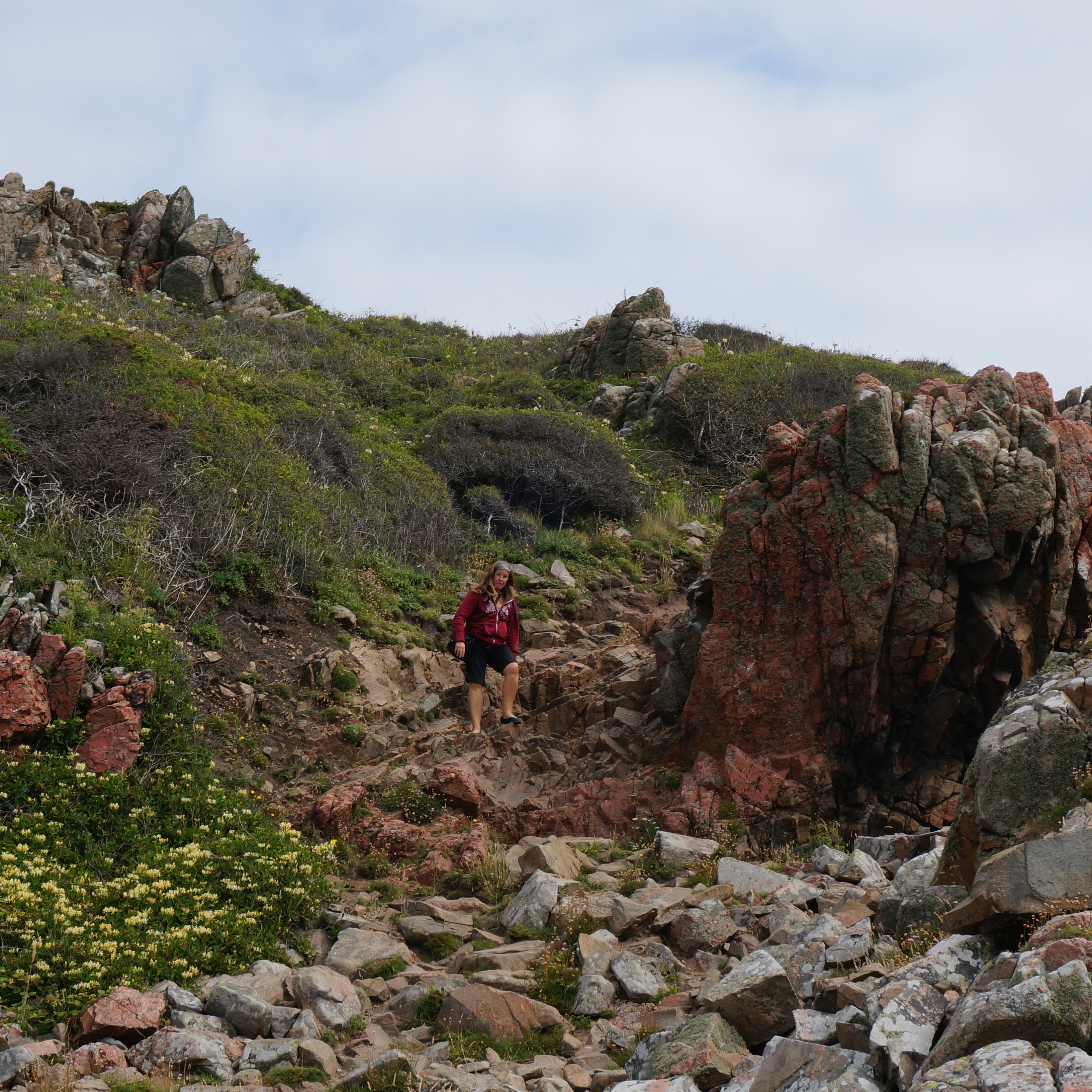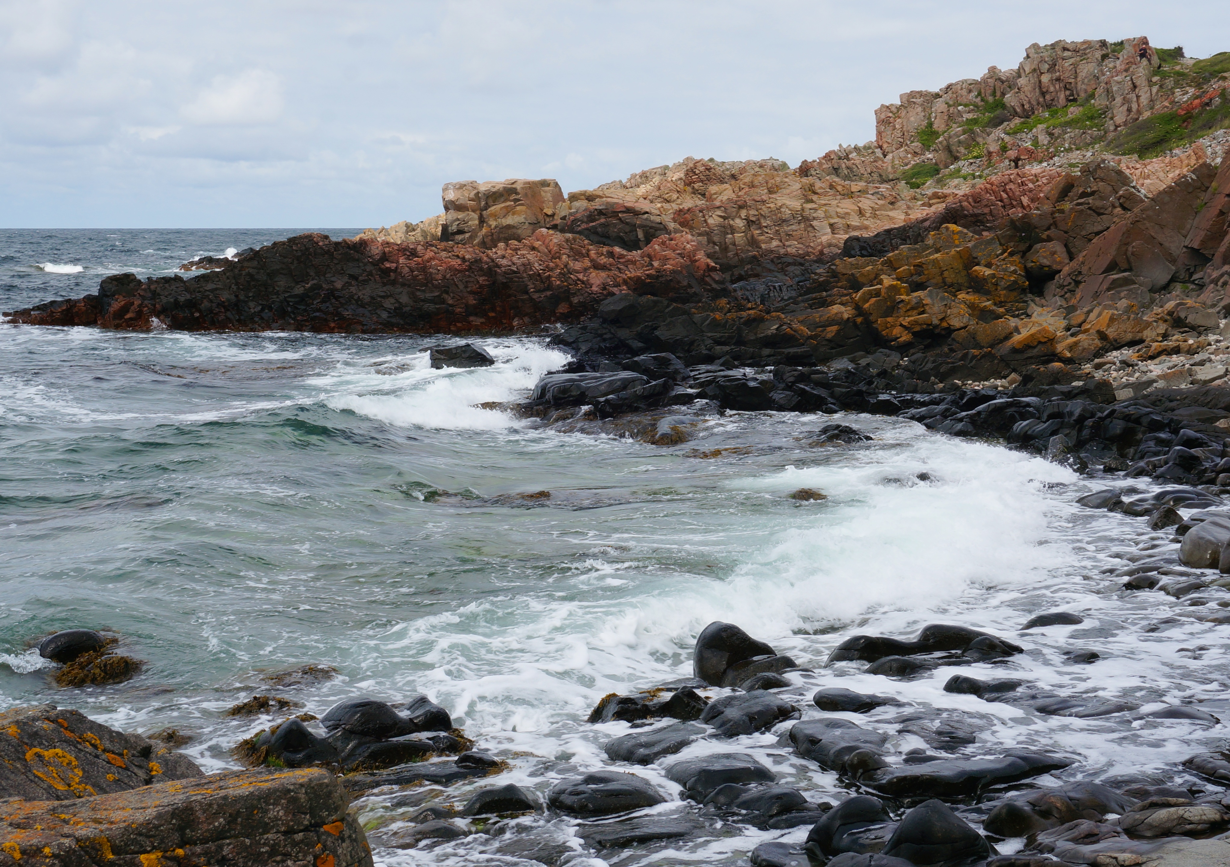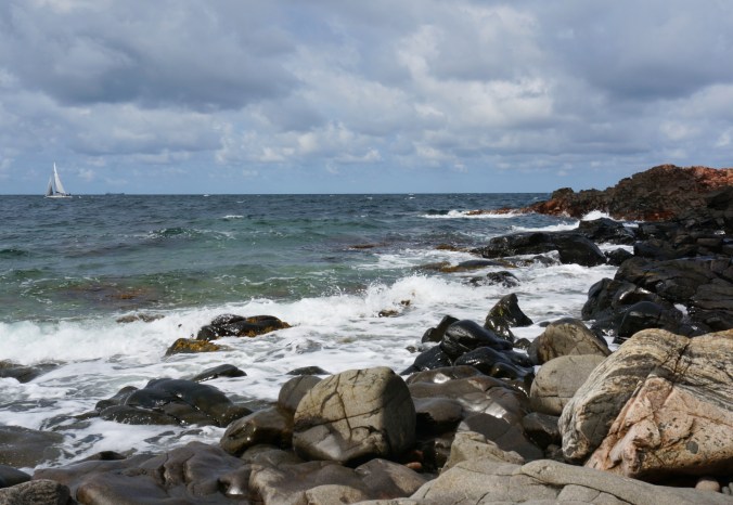 Vi packade ihop och lämnade campingen utanför Mölle. Sen åkte vi till Kullabergs naturreservat och klättrade bland branta klippor – allt för att få se en av alla grottor där. Där finns en fyr – Kullens fyr – inte särskilt vacker – men ändå.