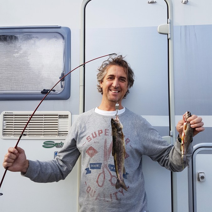 Vi lämnade Gäddede imorse och körde mot Stekenjokk. Resan var magisk – helt fantastiska naturupplevelser. Vi passerade Jormvattnet där Pelle drog upp några bäcköringar.