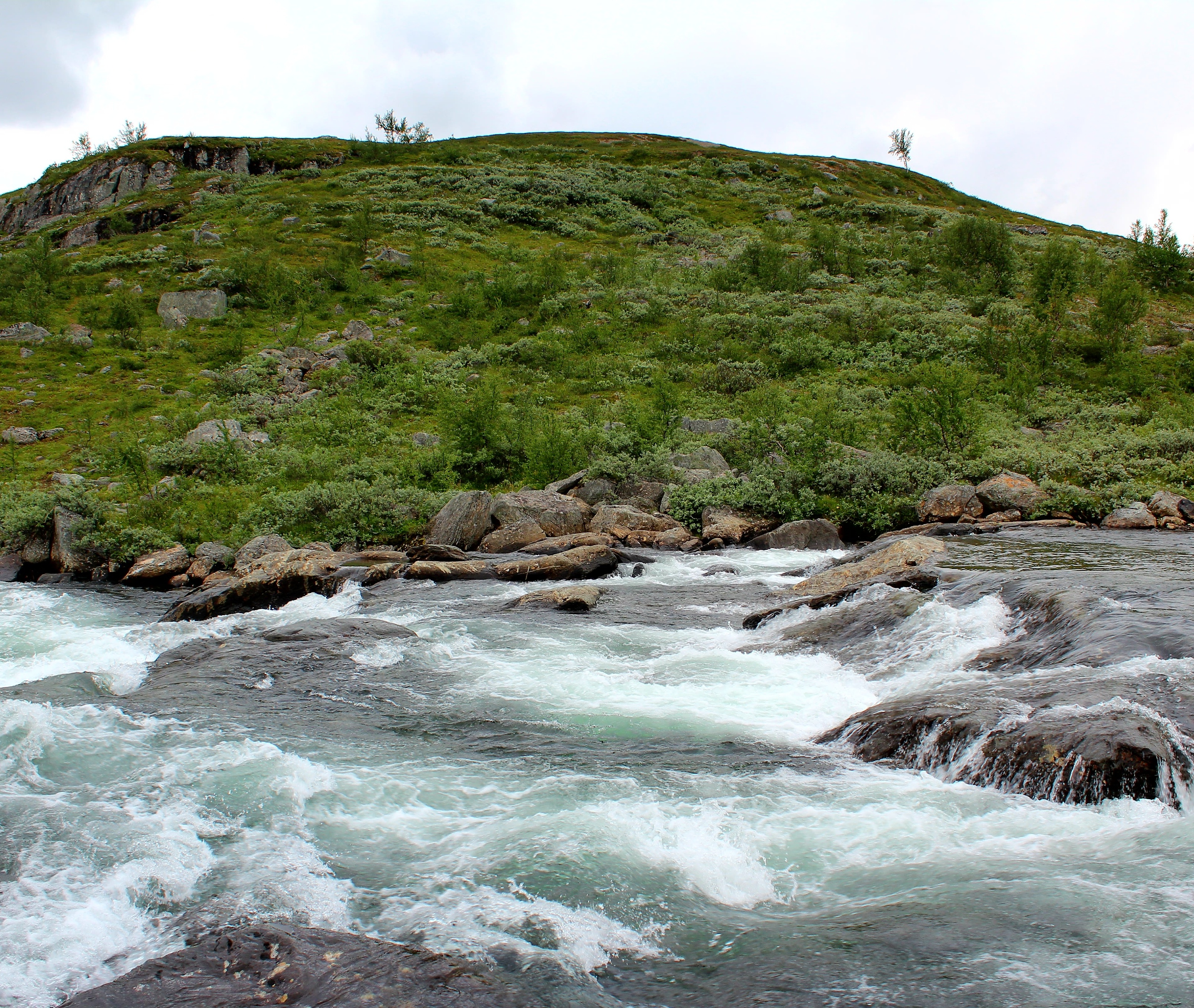 Sen kom upp på kalfjället och Stekenjokk. Där var förstås naturen tjusig, med små bäckar forsar och vackra fjäll.