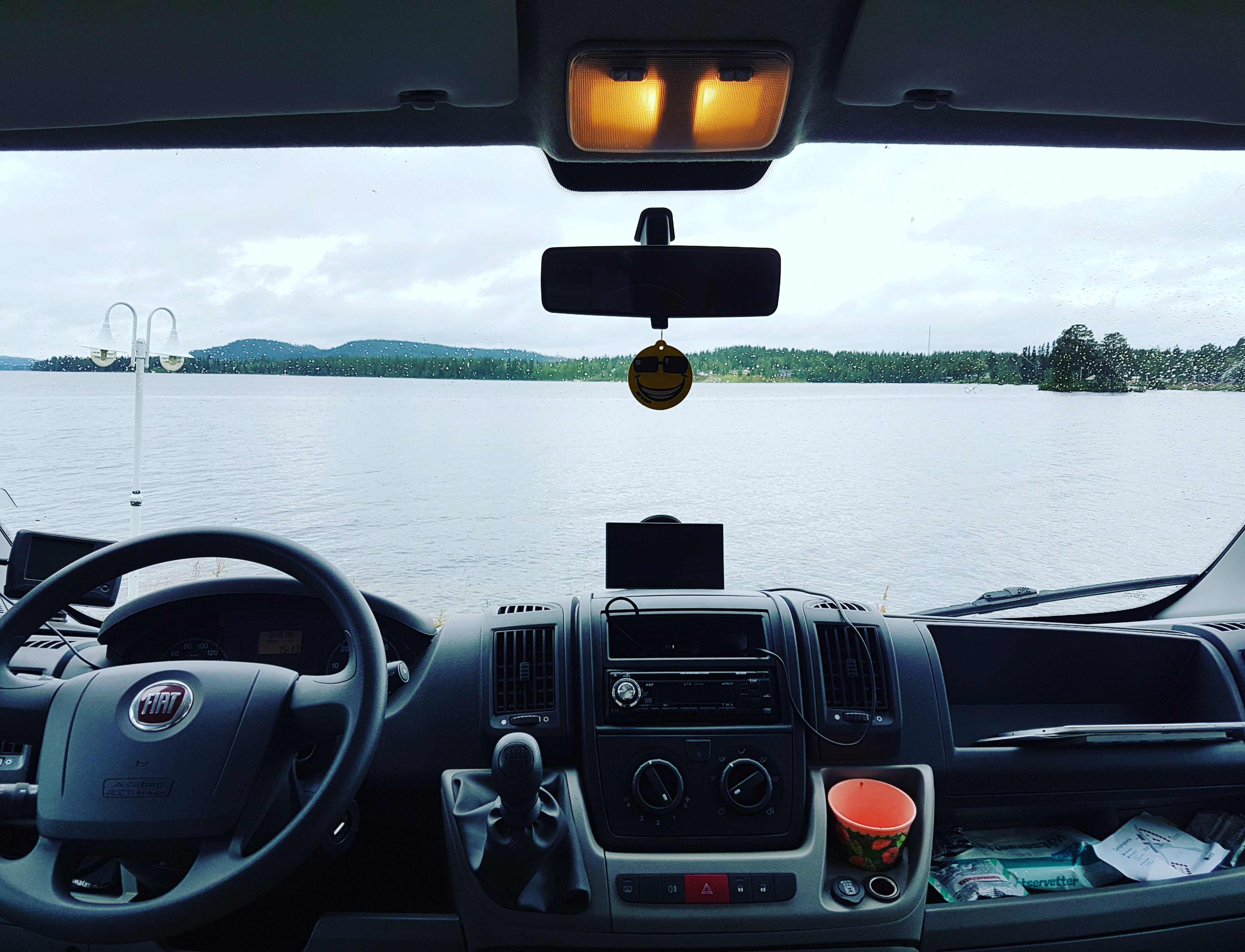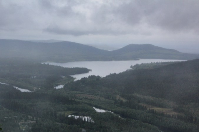 Nu campar vi i Vilhelmina – med utsikt över Malgomajsjön. Så vackra namn på allt här i södra Lappland. Regnet öser ner – vad gör det? Pelle fiskar och jag njuter av att bara vara.