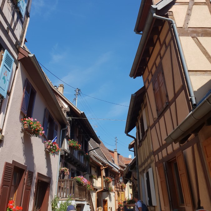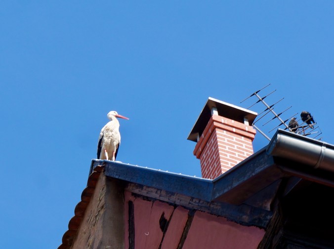 1. Visst e det häftigt med storkarna! Vi satt i Riquewihr och tittade på ett storkbo på ett tak, och trodde det var fake, att de hade det där för att det skulle se roligt ut typ. … och så stack det plötsligt upp ett storkhuvud och sedan ett till 😂
