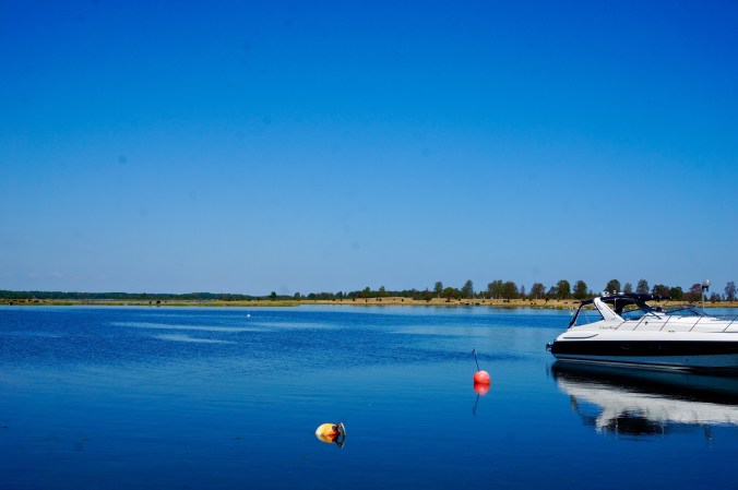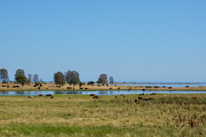 Sedvanligt fikastopp i Kristianopel – Blekinge på väg mot Valdemarsvik och Pelles syrra med sambo. I Kristianopel hade rosorna vissnat, gräset torkat bort och till och med tallarna såg ut att dra en sista suck.. Havet var sig likt – vackert blått och kossorna betade.