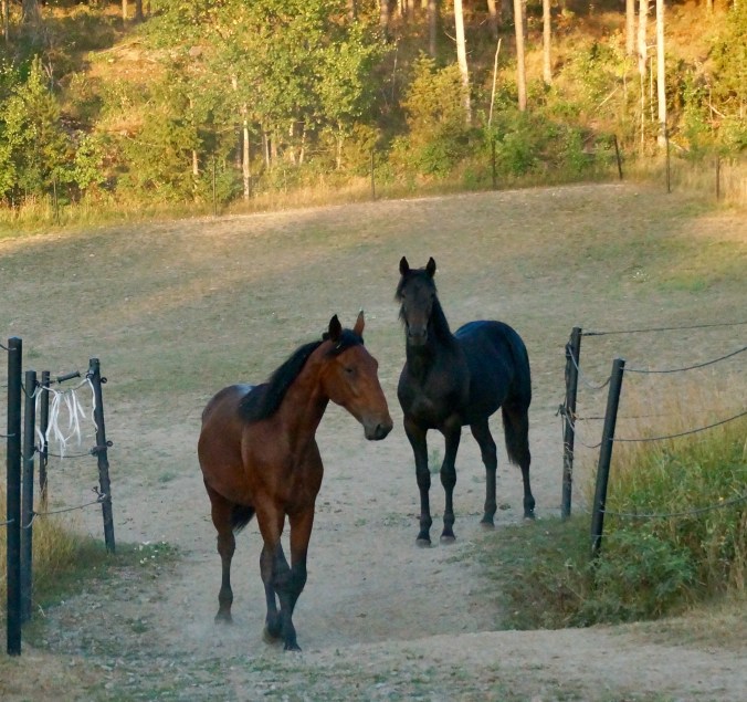 Mysig kväll hos Christie & Conny, gos med deras hästar och så en god middag.