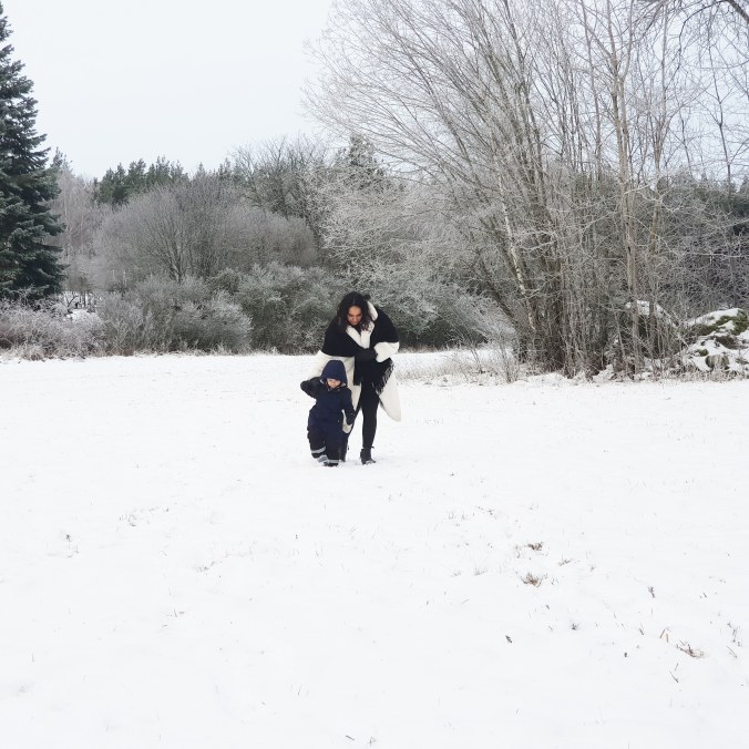 Morgonpromenad här hemma, Malou och Lucas på bilden.