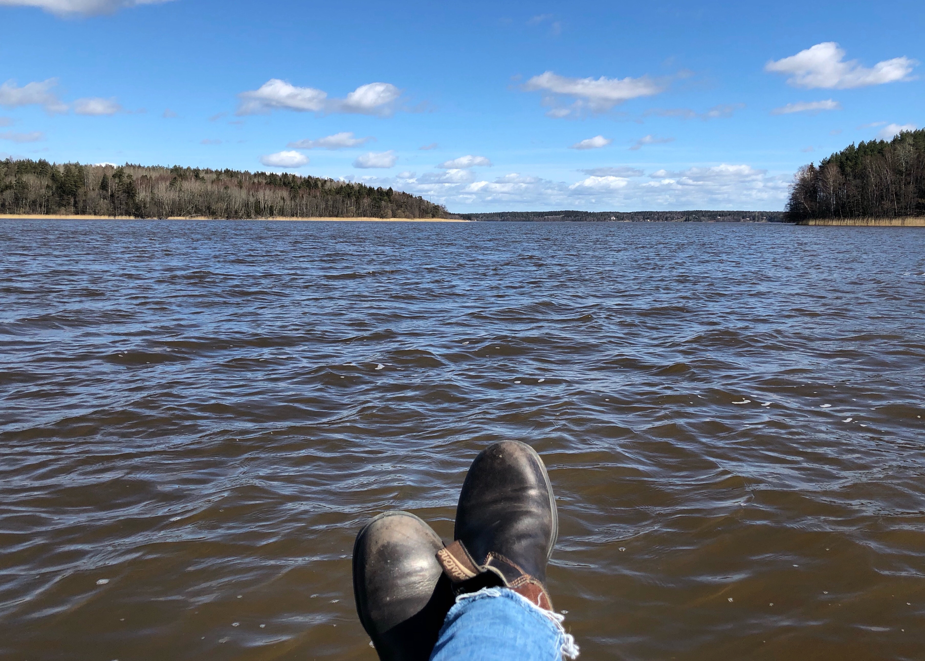 En sån härlig dag med sol, trots att det är lite kyligt. Hundarna och jag tog en promenad ner till vattnet på lunchen. Fördel med att jobba hemifrån, man hinner med en hundpromenad. Hann också insupa lite vackra vyer från bryggan.