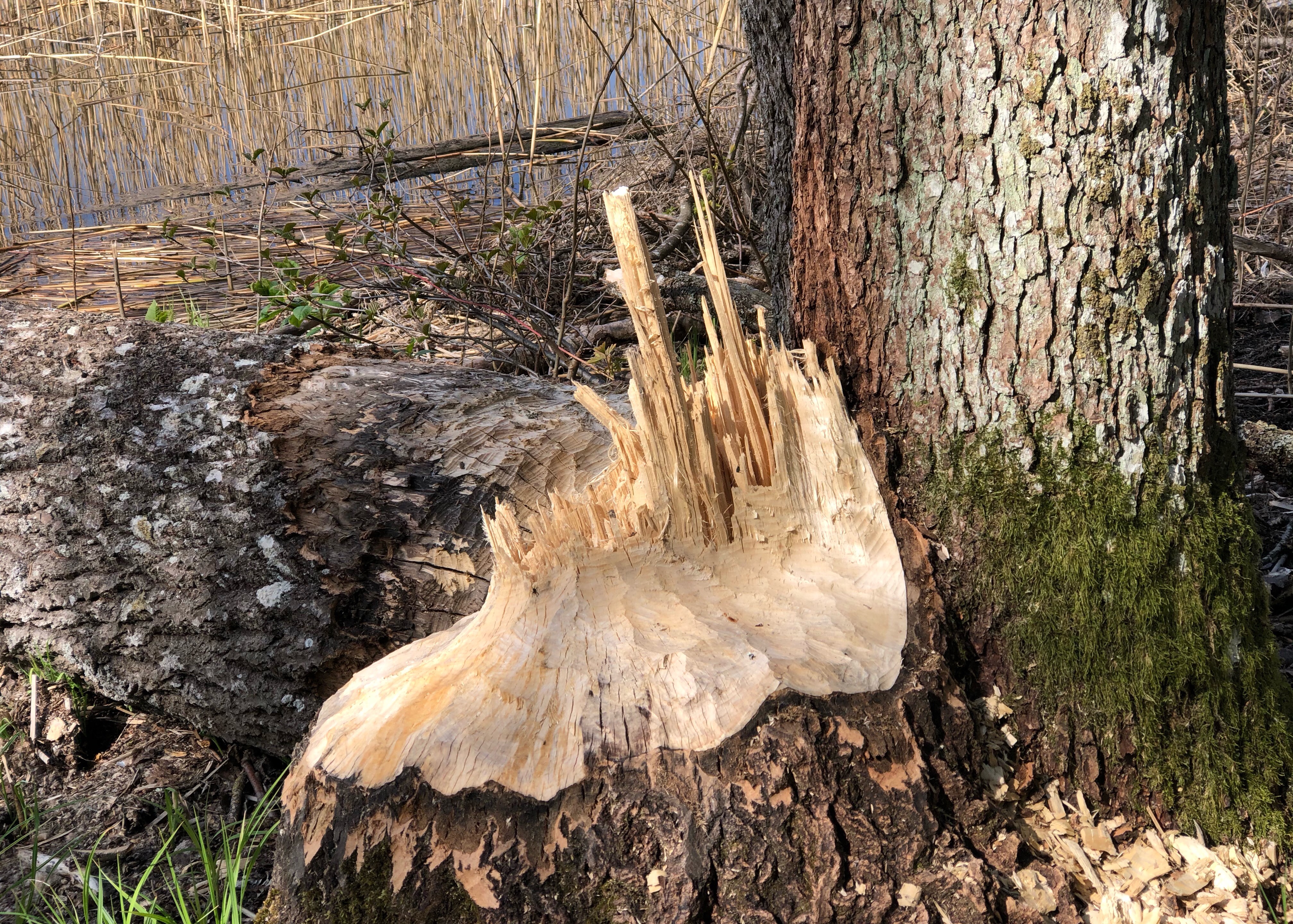 Vi såg spår av bäver och blev glada av alla små björklöv som nu kikar fram.