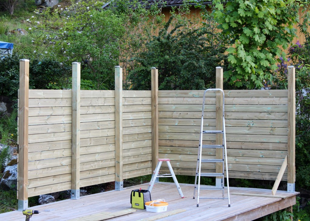 Igår började vi bygga ett vindskydd till en terass som redan fanns när vi flyttade in. Tanken är att vi ska ställa vårt uppblåsbara spabad där. Igår körde Pelle och jag ett bra teamwork – blev vi klara med två väggar – och fick lite Ernst feeling. Fortsättning följer..