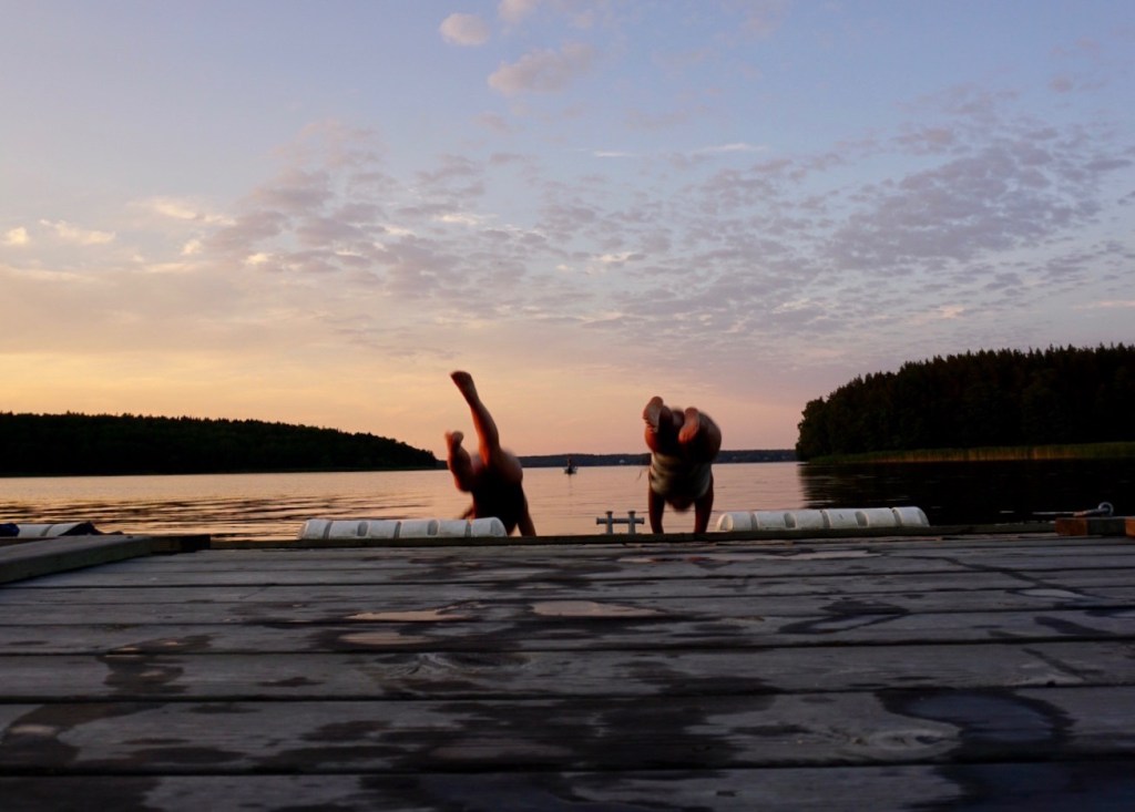 Idag blev det många dopp, både på dagen och så på kvällen . Sen såg vi solen gå ner bakom träden. Vilken härlig dag!