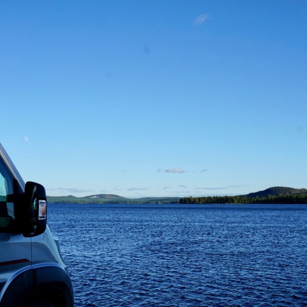 Kolgårdens camping blir nattens logi. Den ligger i närheten av Vilhelmina alldeles vid vattnet. Här finns en trevlig campingvärd, en stor grillkåta, bastu, sandstrand. Det enda vi saknar är lite värme, kallt trots sol idag. Badet får vänta..
