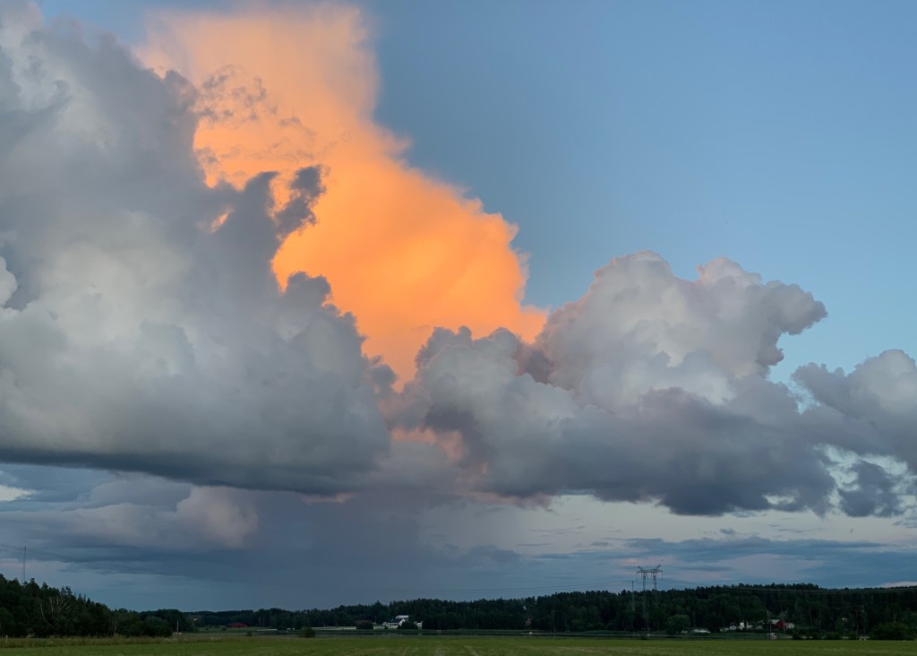 Annars har vädret varit omväxlande, sol, regn och åska. På kvällen tjusiga moln..
