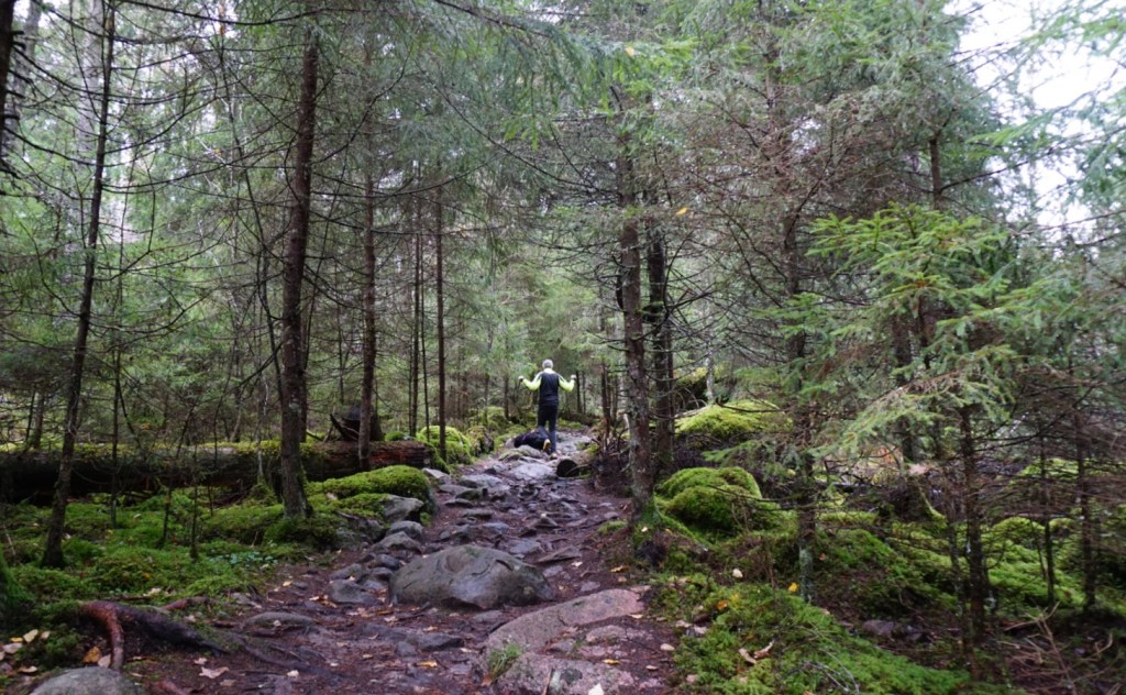 Efter den visiten vandrade vi i Norra Kvills Nationalpark. Vill man ha kvalitet på naturupplevelser är det en ypperlig idé att bege sig till en nationalpark. Vi samlar dessutom på besök i nationalparker.. Så vad gjorde vi? Jo vi vandrade över stenbeklädda stigar, såg klippblock som landat på varandra, stenar klädda med vacker mossa och en liten tjärn mitt i skogen – fin eftermiddag. Naturen ger – energi, ett med alltet. Cheddar & Stilton var nöjda.