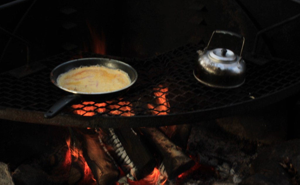Vandringslederna i nationalparken skulle jag nog kalla lättvandrade – det finns både stigar och spångar längs älven. Annars så finns det flera fina vindskydd med eldstäder i nationalparken – där finns oftast också generöst med ved. Fläskpannkaka med kokkaffe – kan det bli bättre?