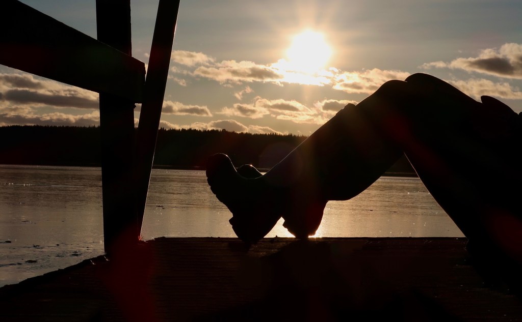 Jag har fått möta solen på andra ställen. Bland annat på den här bryggan – bortglömd mitt ute i skogen.