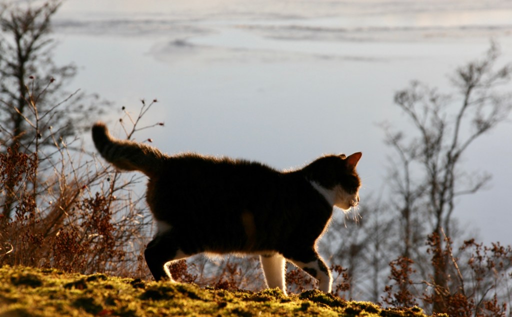 Igår, då hade jag sällskap av katten, inte dumt det heller..