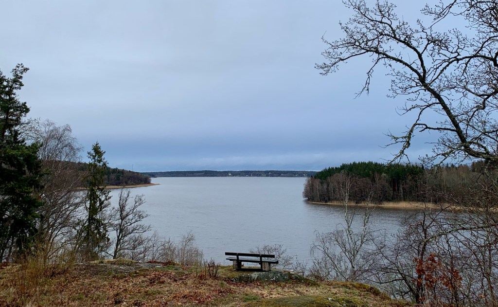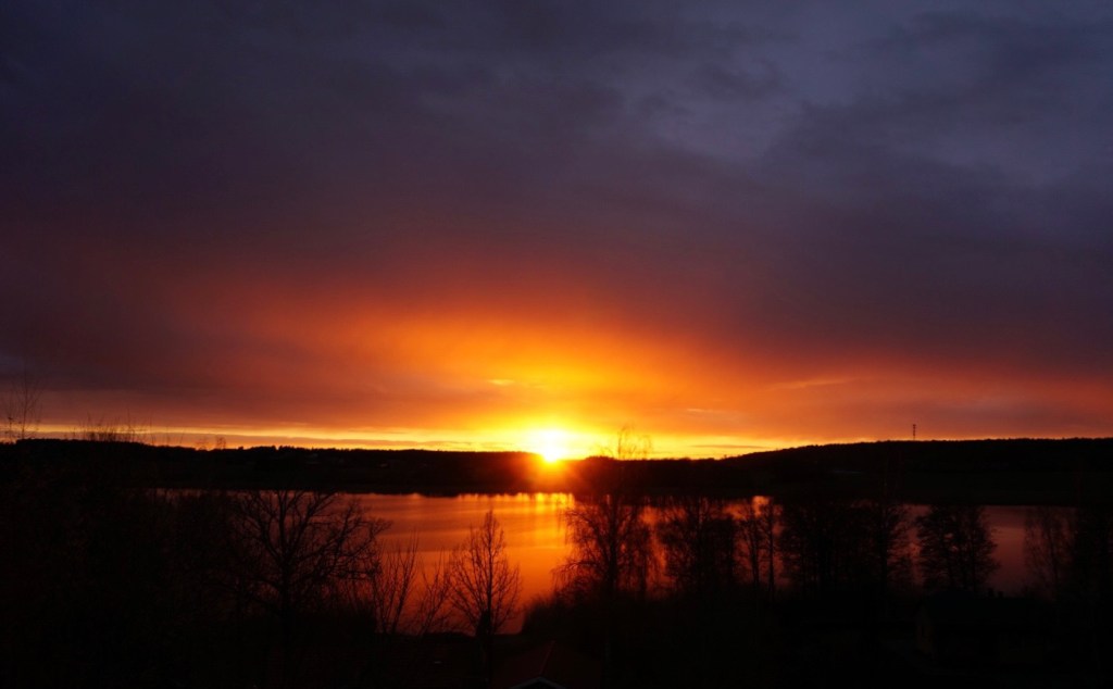 Grå och molnig dag annars som blev desto färggladare på kvällen när solen gick ner. På kvällen gick vi 4 km med hundarna – skönt att röra på sig – det måste man nästan för att orka och för att gå ner i varv. .