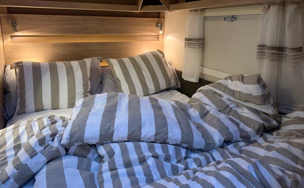 Väl framme kunde vi i alla fall konstatera att vi gjort helt rätt i att byta plåtisen till ett större och bekvämare boende. Hundarna har svängrum – vi har space att vara på. Soffan är superskön att chilla i, sen är golvvärmen mysig ruggiga dagar som denna. Plåtisen värmde vi med gasol och jag gillade aldrig att sova på en gasoltub som var igång. Ofta körde vi värmen på kvällen så det blev varmt, sen när vi skulle sova stängde vi av den. På morgonen vaknade vi och frös..