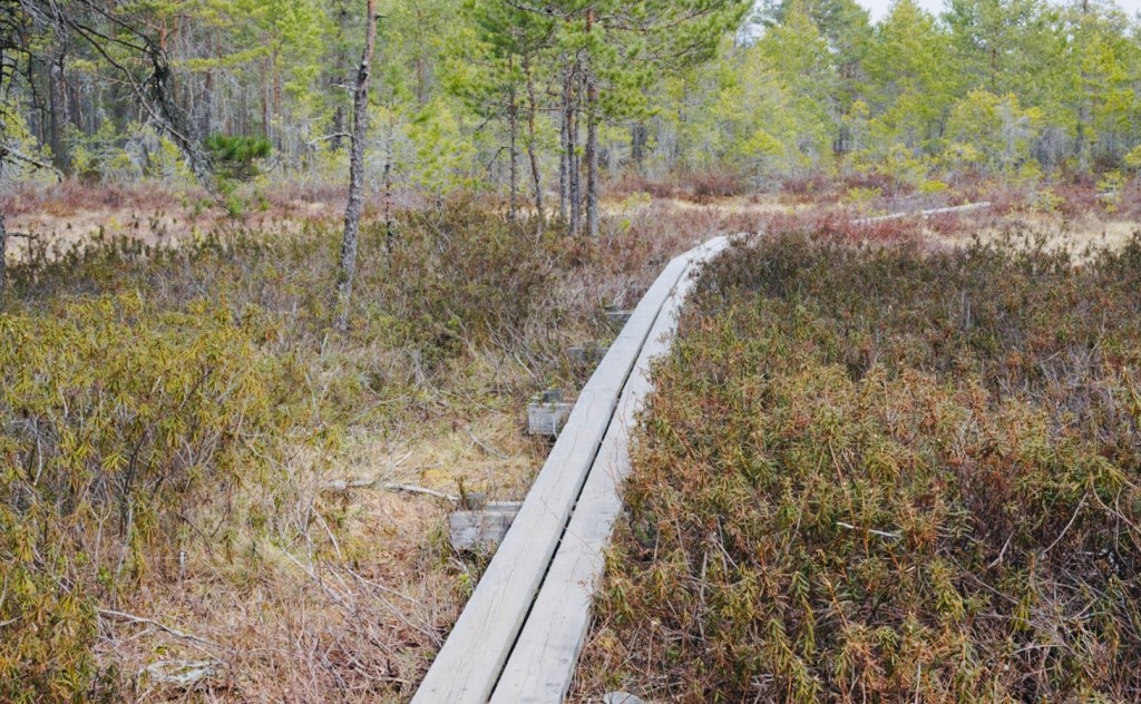 Men vi hann som sagt var med flera vandringar och en av dem gick till Andersboviken. Den leden gick på spångar över en myr och en stor mosse. Den gick också genom en kuperad skog och kändes väldigt vild och vacker. Vildmarksfeeling det var vad man fick, och en norrlandskänsla.