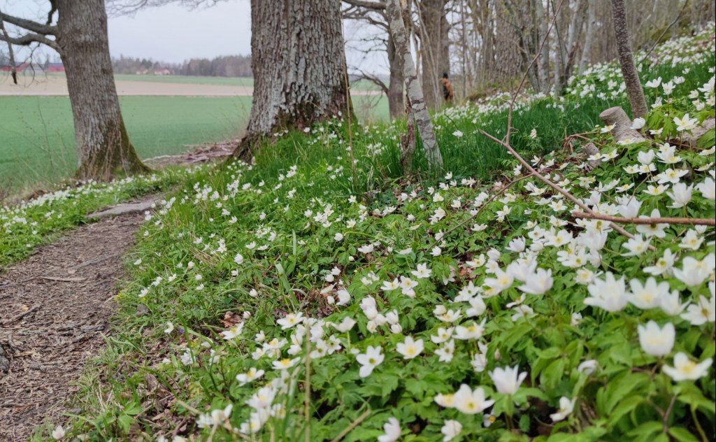 Jag tänker att det här naturreservatet kan nog vara vackert att besöka när som under året. Idag svämmade det över av vitsippor och blåsippor. Tänk sen i sommar när ekarna fått löv, vad vackert det måste vara. För att inte tala om hösten, fina färger och kan tänka mig att det är bra svampskogar.
