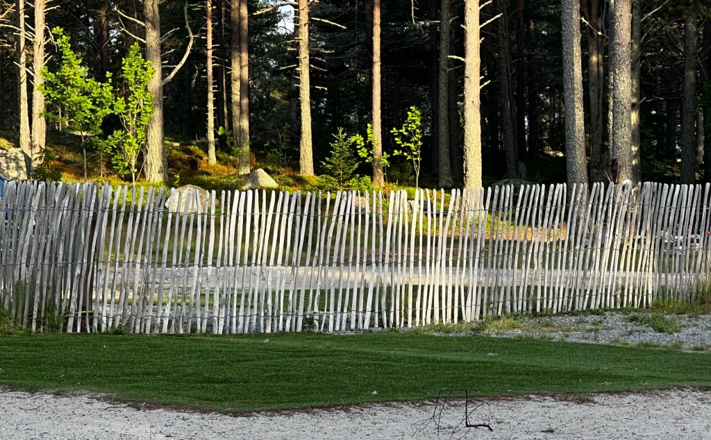Imorse klev vi upp klockan fyra och kom iväg hemifrån med husvagnen klockan halv sex. Vi styrde kosan norrut och siktade på Höga Kusten. I Tönnebro åt vi frukost och tog en tupplur innan vi rullade vidare. Men när vi hade åkt sisådär en 30 mil, så började både Pelle, jag och hundarna tycka att det räckte. Så vi svängde av i Hudiksvall och tog oss till Hornslandet och Hölicks Spa & Resort. Där fick vi en plats med el, konstgräsmatta inhägnad med kastanjestaket. Riktigt trevligt tyckte vi. Vår plats – nr 4 – låg så pass nära havet (med lite träd emellan) att vi kunde njuta av vågornas brus.